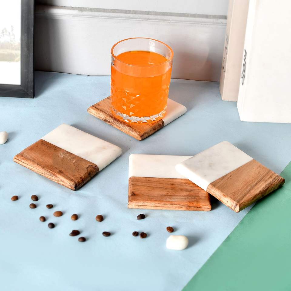 ที่รองแก้วหินอ่อนและไม้จานรองแก้วไม้พร้อมจานรองแก้วหินอ่อนหินสำหรับเครื่องดื่ม