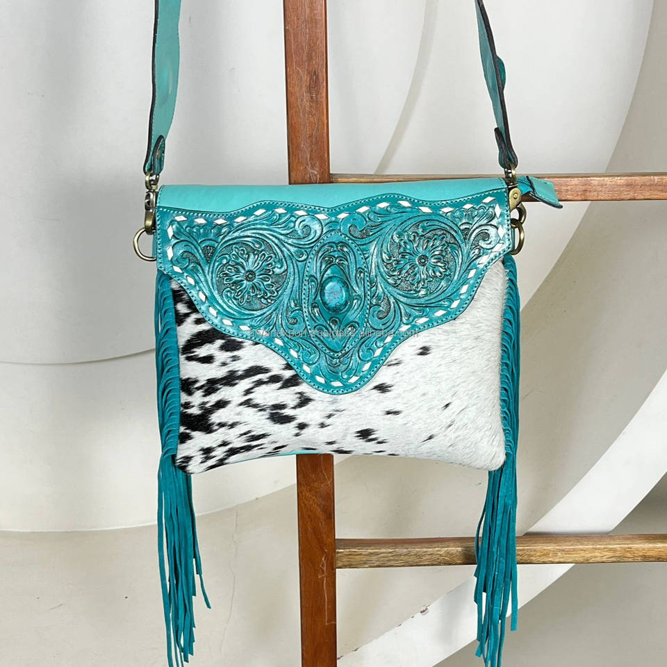 Product name:Hand Tooled Cowhide Leather Fringe Crossbody Bag