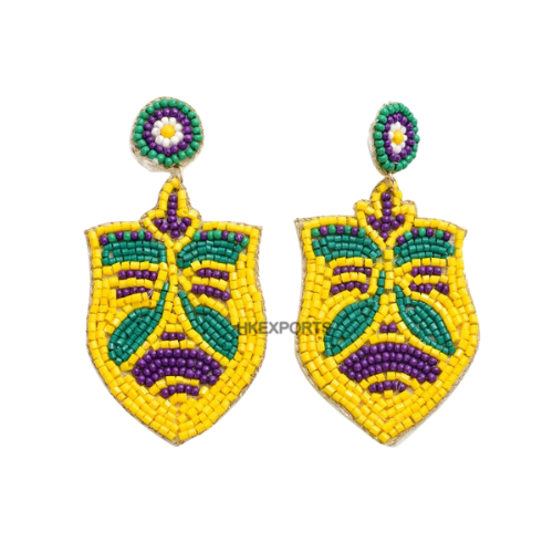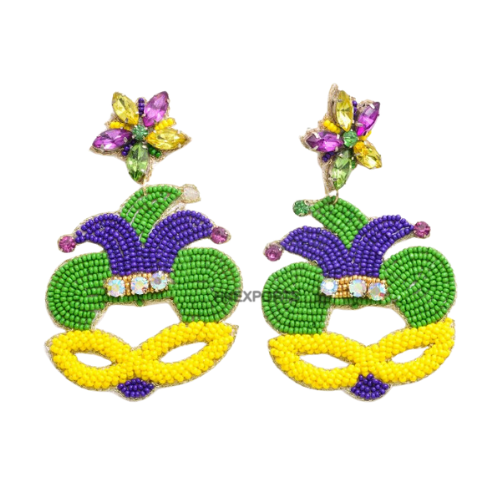 ต่างหูลูกปัดมาร์ดิกราส์เครื่องประดับงานปาร์ตี้หลากสีทำมือสำหรับผู้หญิง