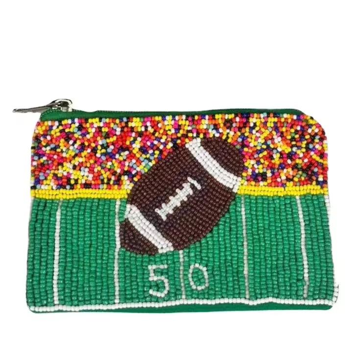 กระเป๋าใส่เหรียญงานฝีมือคริสตัลคราฟท์สำหรับงานมาร์ดิกราส์ ทำจากผ้าประดับลูกปัดแก้ว สีและขนาดตามสั่ง กระเป๋าคลัทช์รูปหัวใจ