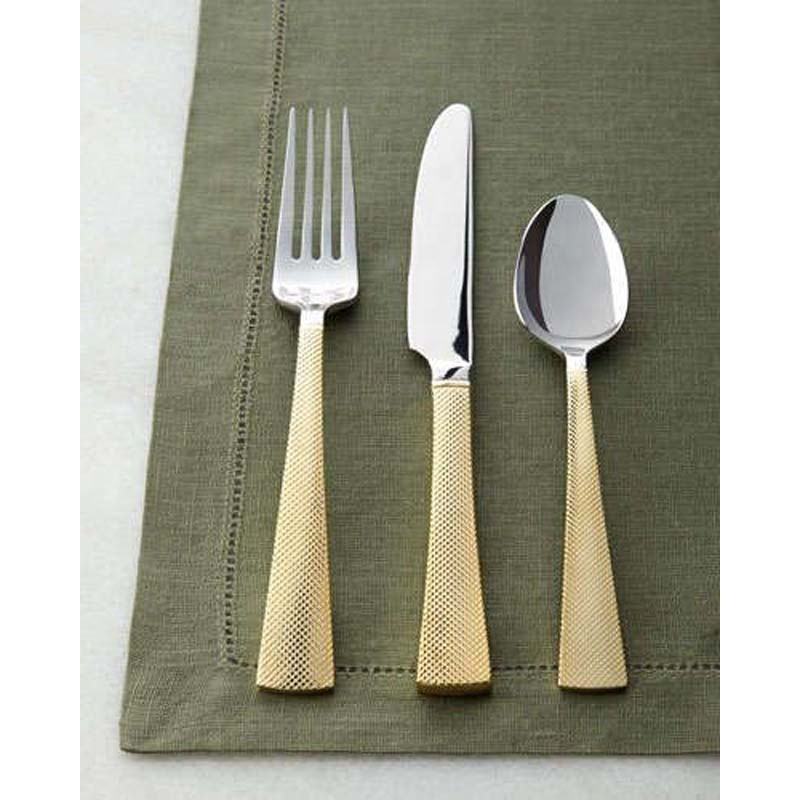 ชุดช้อนส้อมมีดด้ามหนาทำจากสเตนเลสลายด้านสีทองมีดและช้อนที่น่าตื่นตาตื่นใจ