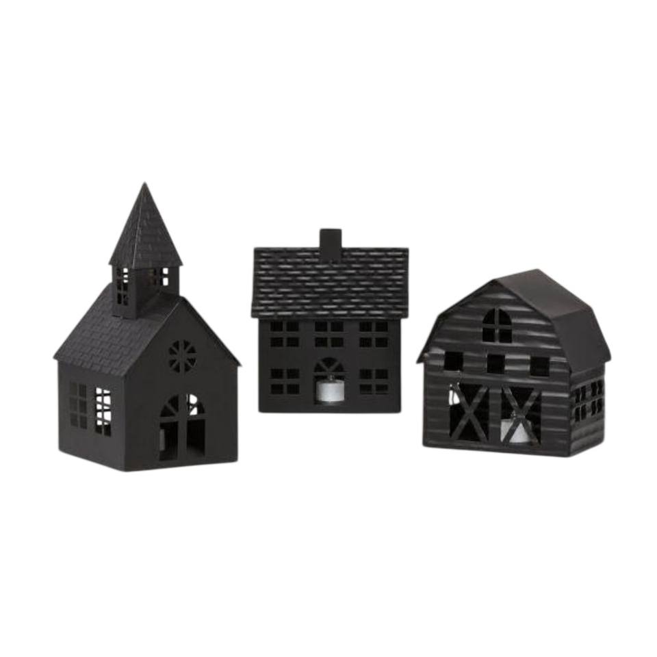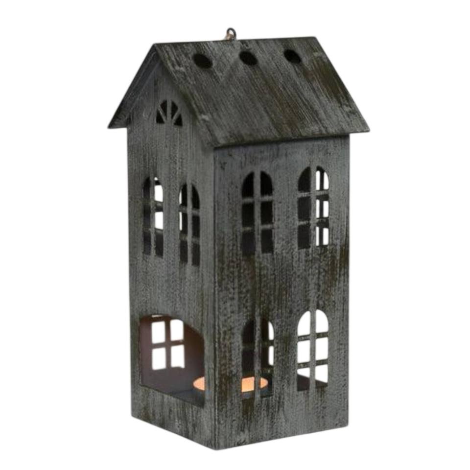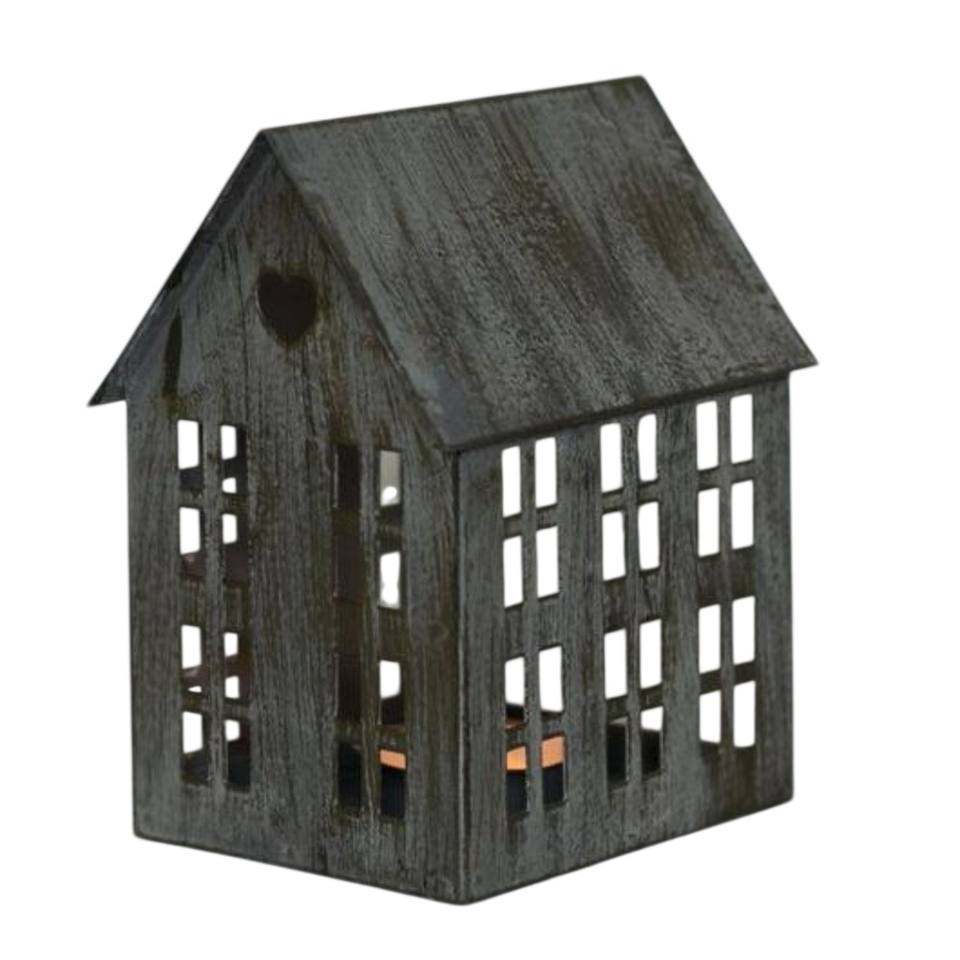 ที่ตั้งเทียนโลหะสีดำด้านรูปทรงบ้านที่เป็นมิตรกับสิ่งแวดล้อมโคมไฟเหล็กชาสำหรับวันวาเลนไทน์