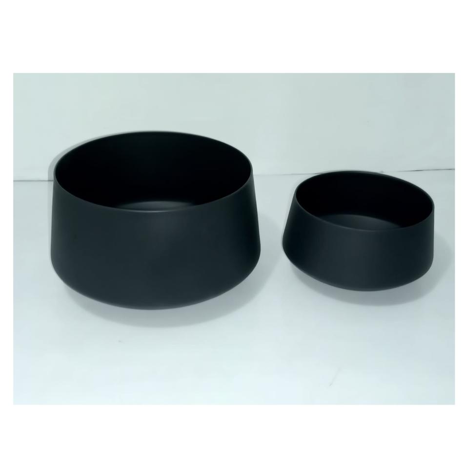แจกันโลหะเคลือบสีดำด้านแบบขายส่ง แจกันตกแต่งทำมือสำหรับห้องนั่งเล่นสมัยใหม่ แจกันสำหรับล็อบบี้โรงแรมระดับไฮเอนด์