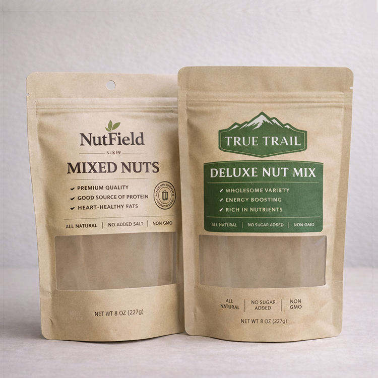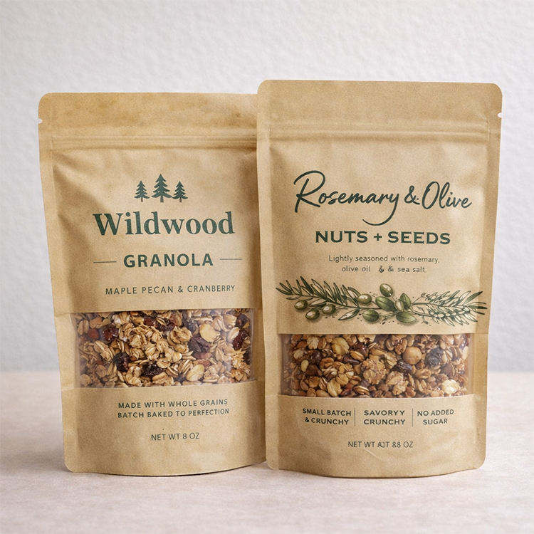 ถุงบรรจุภัณฑ์อาหารแบบตั้งได้ชนิดด้าน พร้อมหน้าต่างใส ขายส่ง | พลาสติกเคลือบด้านแบบ BOPP | ขนาดเล็ก | โรงงานเวียดนาม
