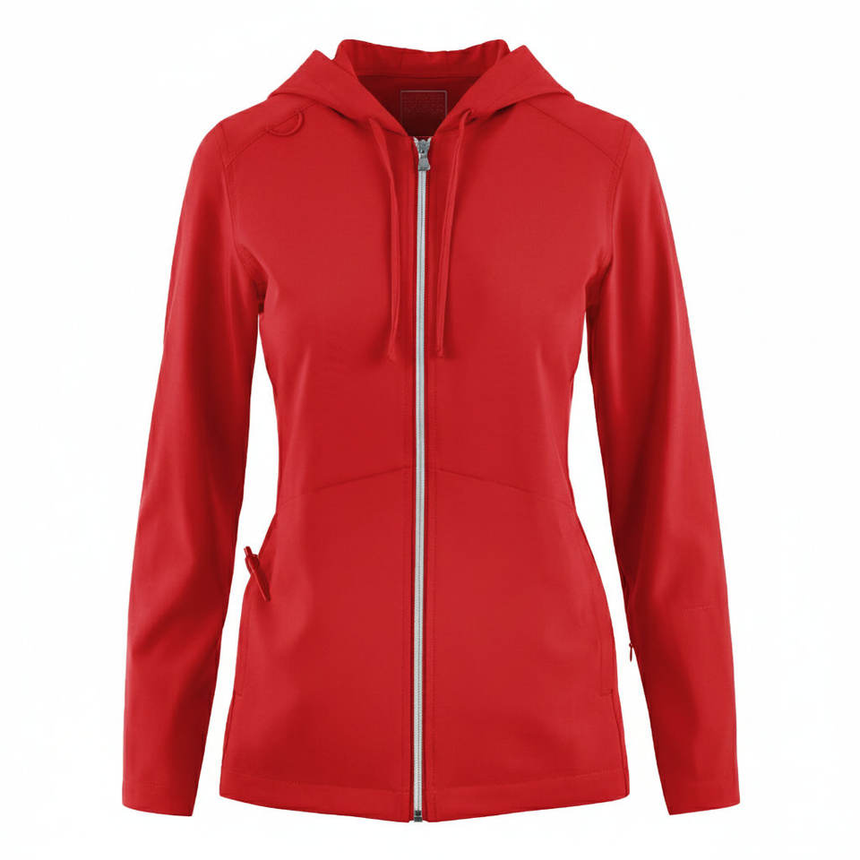 เสื้อแจ็คเก็ตสครับสำหรับแพทย์หญิง ขายส่ง เสื้อฮู้ดอุ่นๆ มีซิปด้านหน้า สไตล์ชุดออกกำลังกาย ชุดยูนิฟอร์มแพทย์ มีกระเป๋า