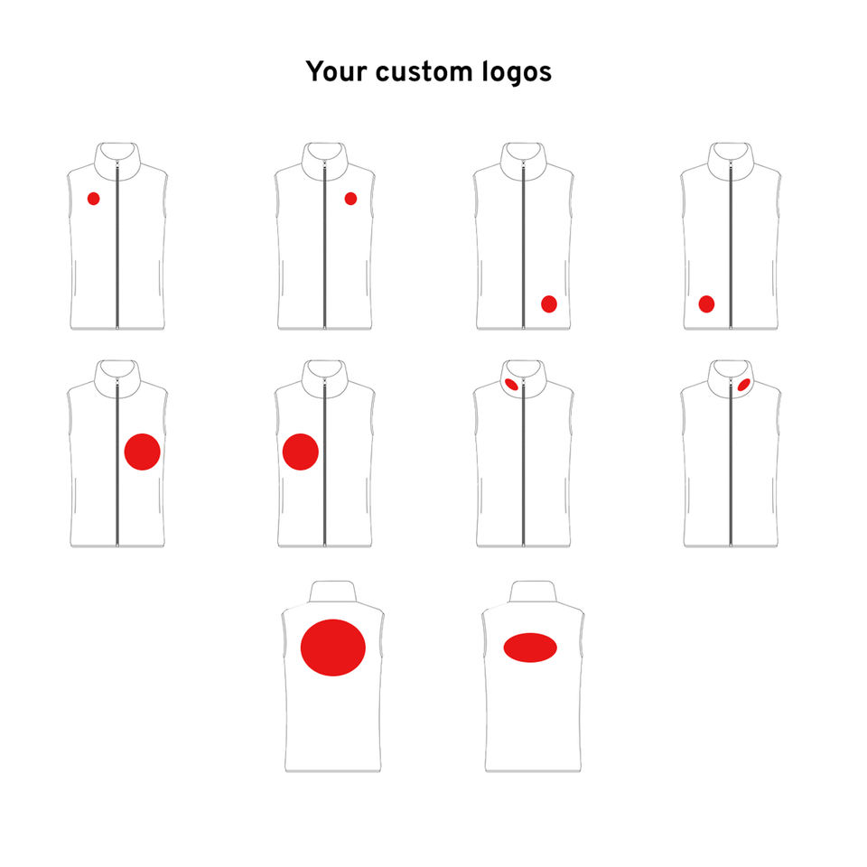 ตำแหน่งโลโก้:ด้านหน้า, ด้านหลัง, แขนเสื้อด้านซ้าย, แขนเสื้อด้านขวา, ขอบล่าง, หลังคอ