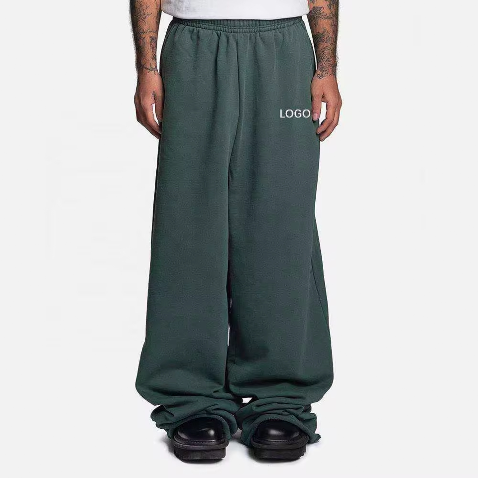 กางเกงวอร์มลำลองผู้ชายขายส่ง ผ้าฝ้าย 100% สไตล์สตรีทแวร์ มีกระเป๋าซิป เอวกลาง ดีไซน์หน้าเรียบ สีพื้นแบบสโตนวอช