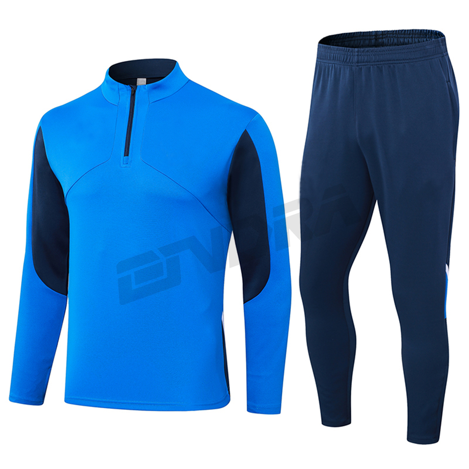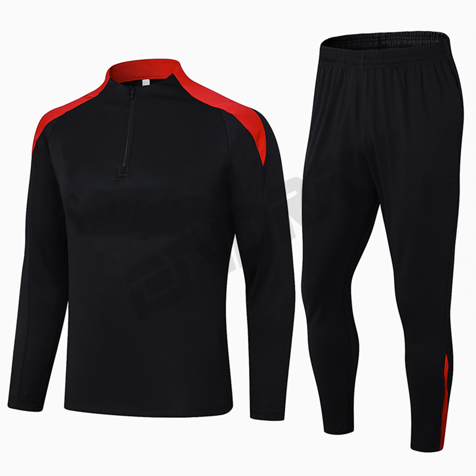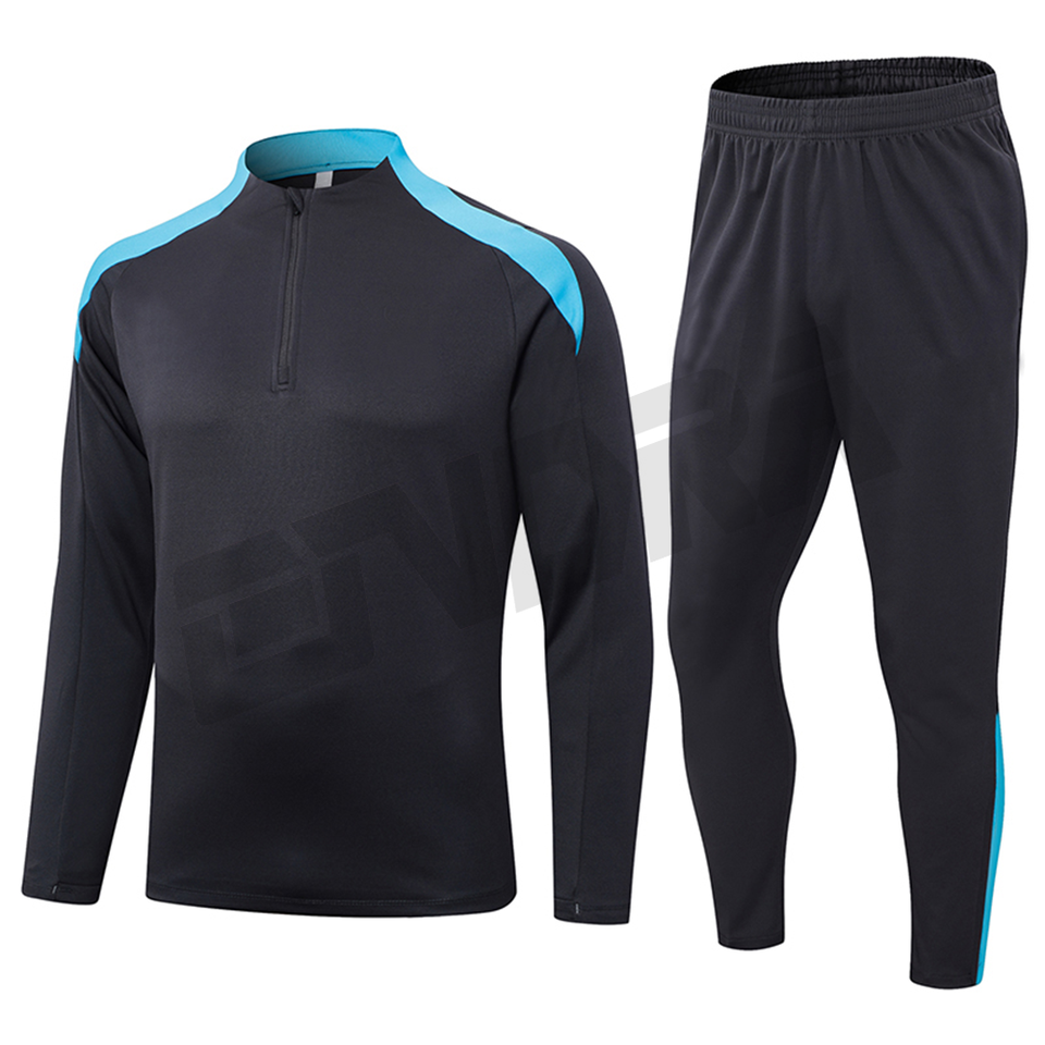 ชุดกีฬาสองชิ้นชุดวอร์มสโมสรซิปสีดำสำหรับผู้ชายชุดฝึกฟุตบอลฤดูหนาว