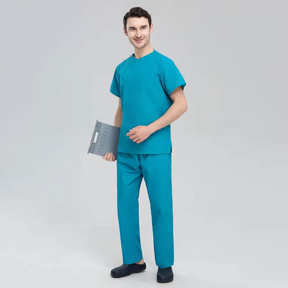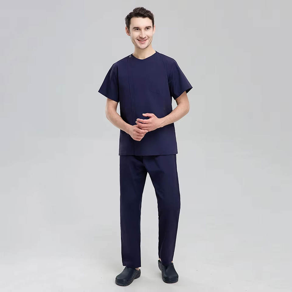 ชุดยูนิฟอร์มแพทย์แขนสั้นคอวีสำหรับผู้ชายชุดผ่าตัดพยาบาลโรงพยาบาลออกแบบโลโก้ได้ตามต้องการ