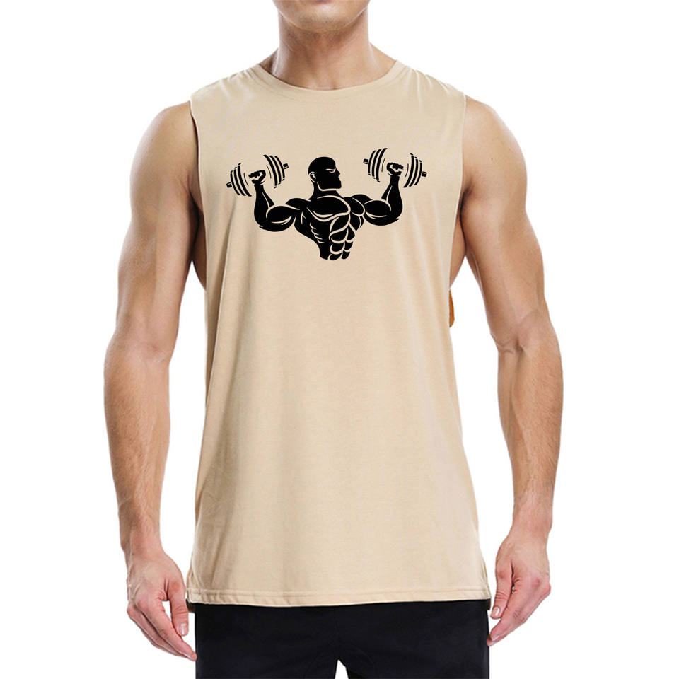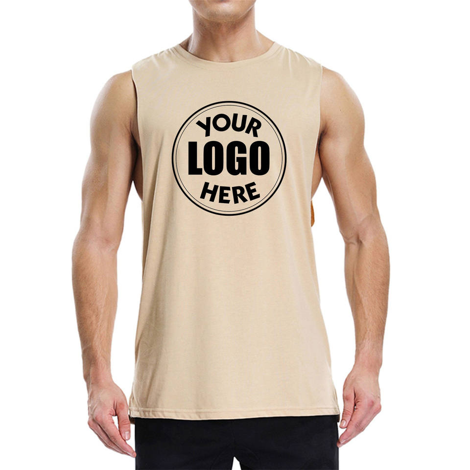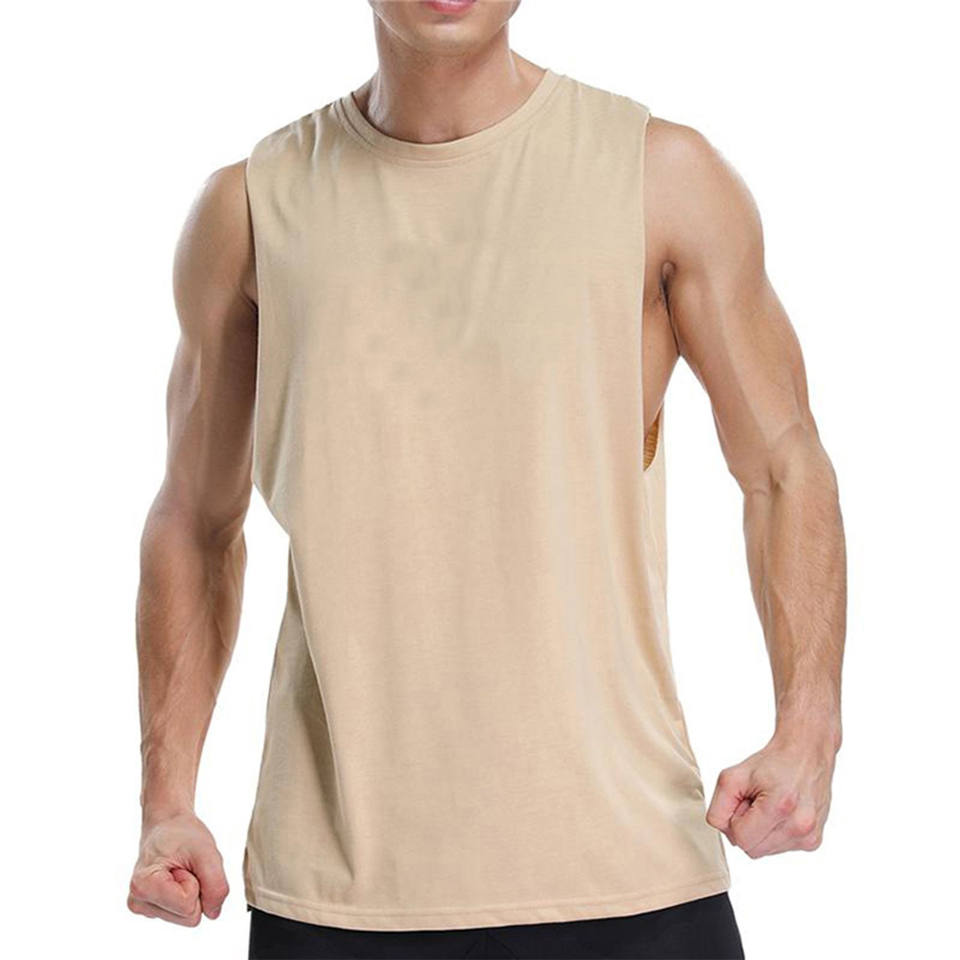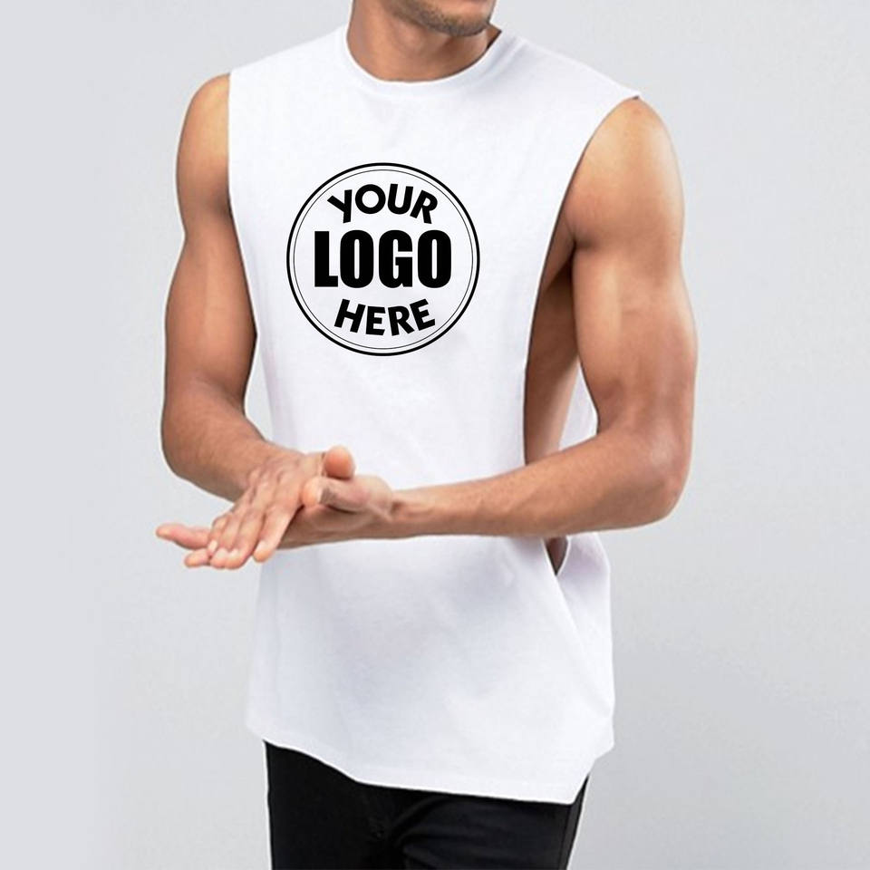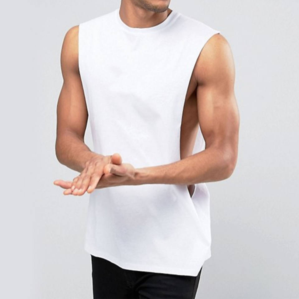 เสื้อกล้ามรัดรูปผู้ชายแบบขายส่ง คัตเอาท์ลึก แขนกุด สีขาว สำหรับออกกำลังกาย ฟิตเนส เวทเทรนนิ่ง