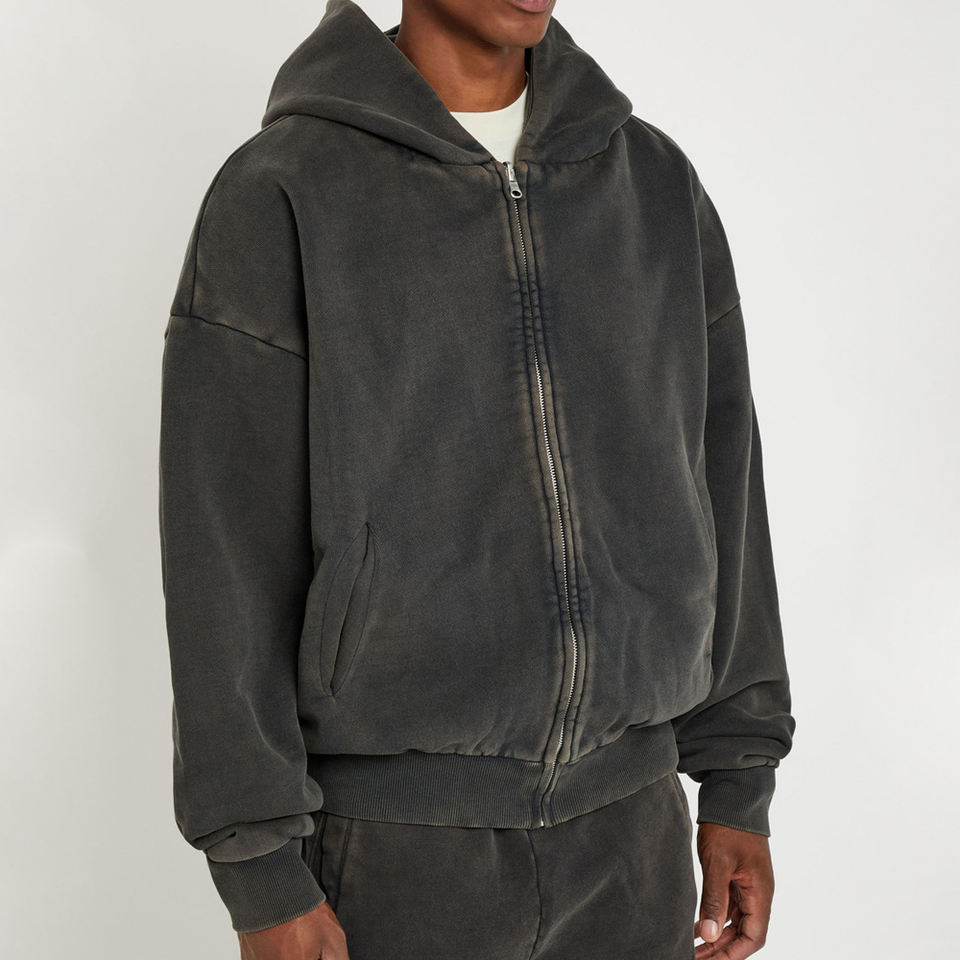 High Quality Men Zipper Acid Wash Hoodie