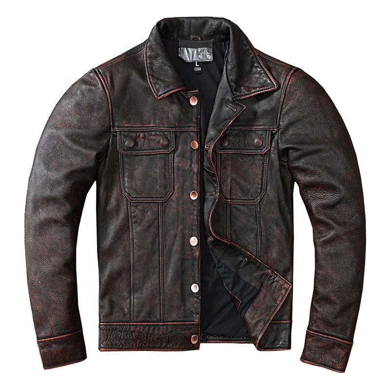 แจ็คเก็ตหนังแท้ผู้ชายขายส่ง แจ็คเก็ตหนังสำหรับขี่มอเตอร์ไซค์กันลมสำหรับฤดูหนาว
