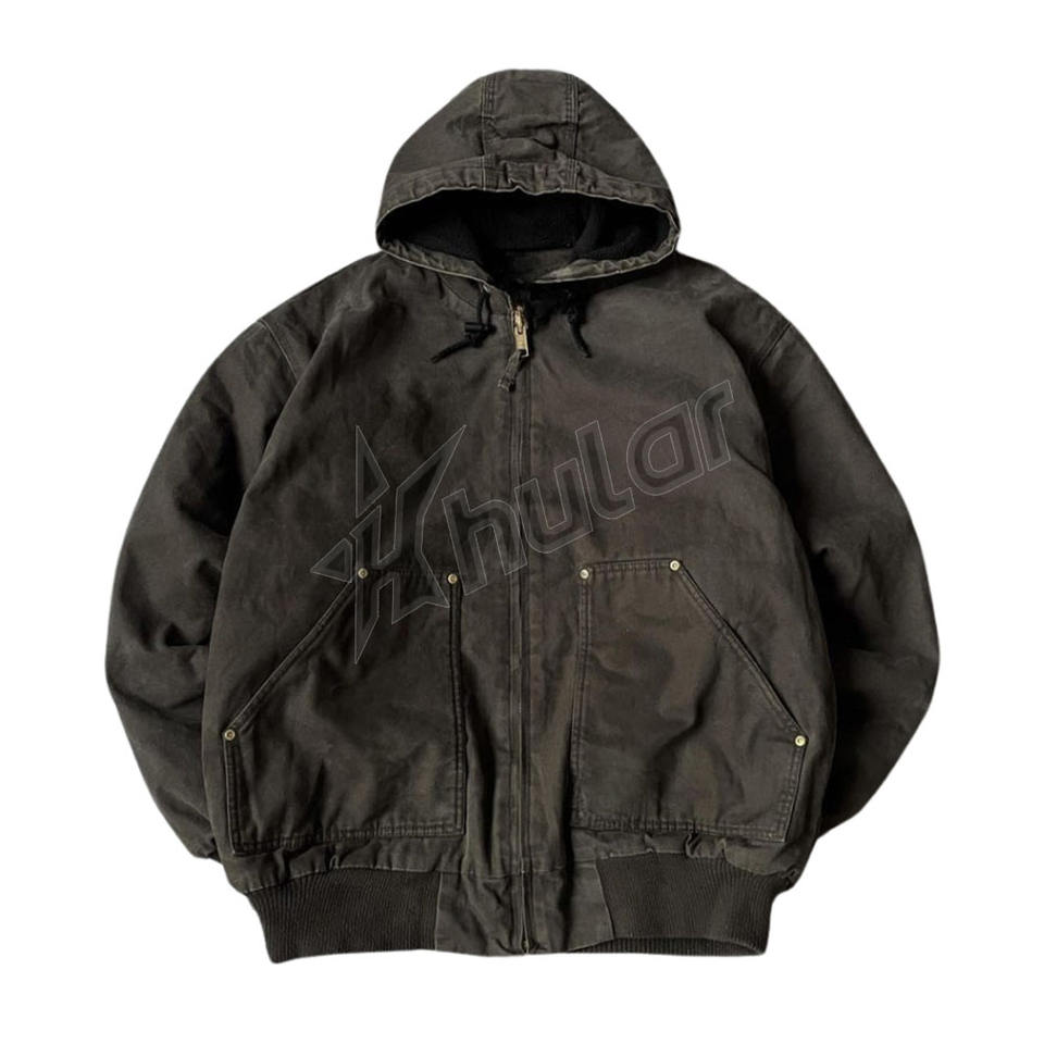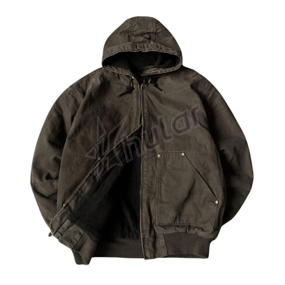 แจ็กเก็ตผู้ชายเสื้อแจ็คเก็ตวินเทจแบบย้อนยุครุ่นเฮฟวี่น้ำหนักน้ำมันผ้าใบมีฮู้ดสำหรับฤดูใบไม้ผลิ