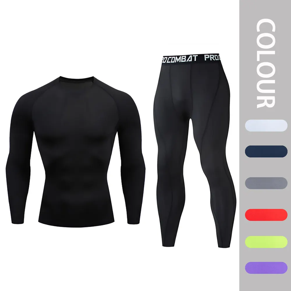 ชุดออกกำลังกายผู้ชายไซส์ใหญ่แบบขายส่ง ชุดวอร์มแบบรัดรูป 2 ชิ้น แขนยาว ผ้าระบายอากาศ