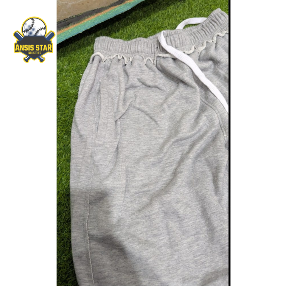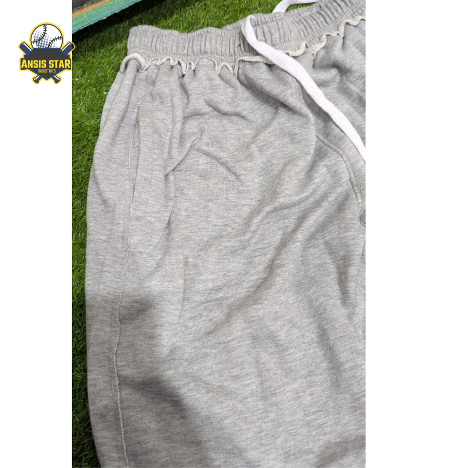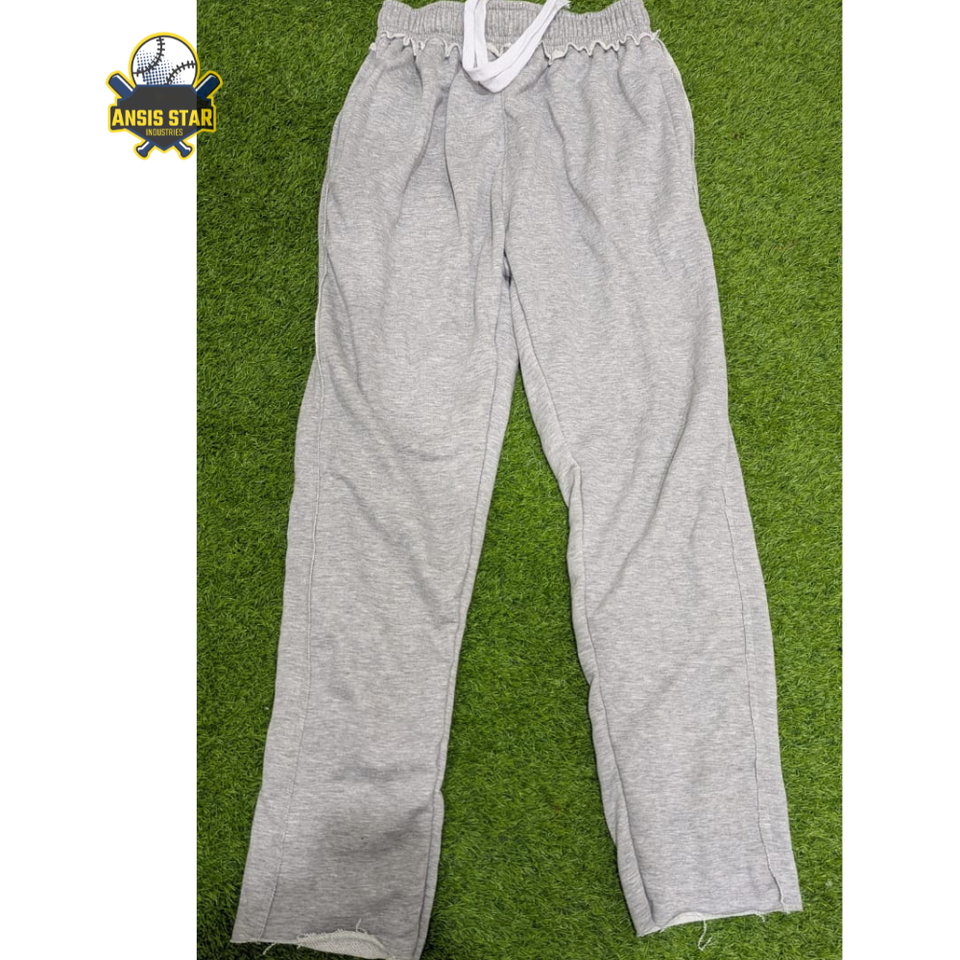 กางเกงสเวตเตอร์ของผู้ชายชุดสตรีทแวร์สำหรับเย็บริมผ้าฝ้ายเนื้อผ้าเทอร์รี่สไตล์100% สีเทาขากว้างและสูง