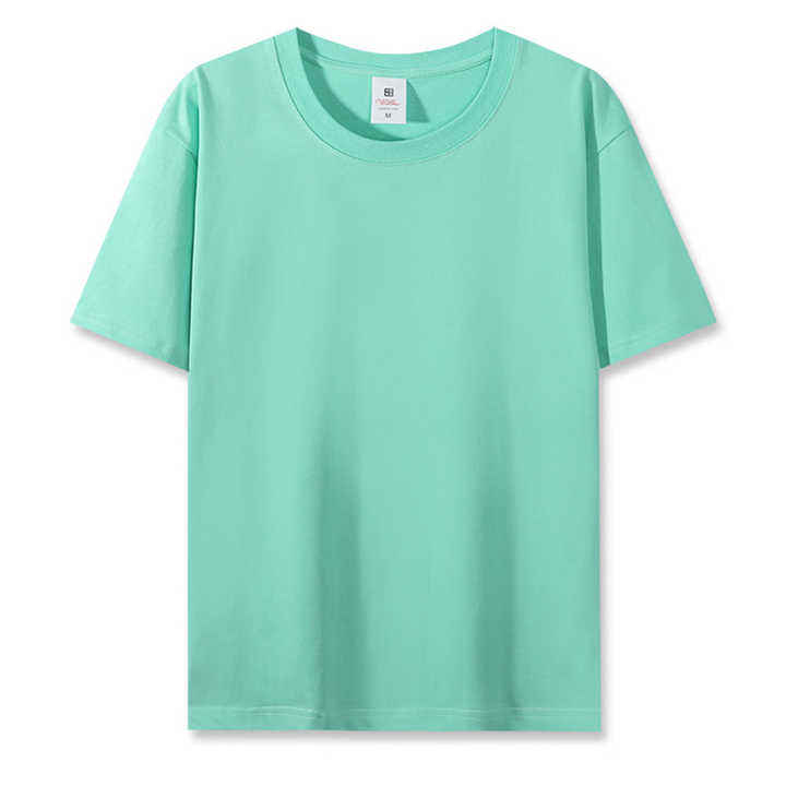 เสื้อยืดผู้ชายคอกลมผ้าฝ้ายแขนสั้นสีพื้นเรียบแฟชั่นสวมใส่สบาย
