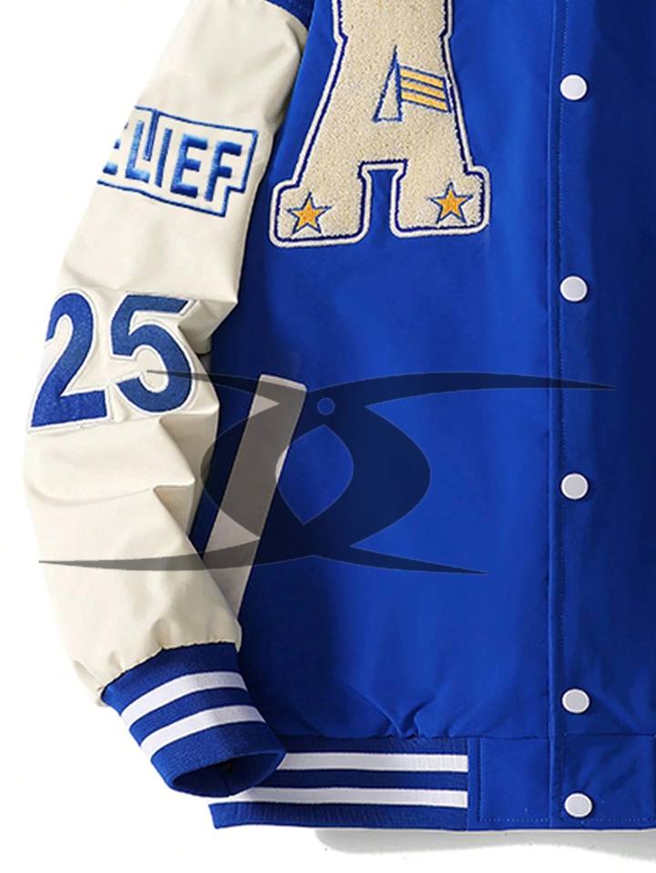 แจ็กเก็ตผ้าขนสัตว์100% สำหรับผู้ชายแจ็กเก็ตเลตเทอร์แมนแบบเบสบอลออกแบบได้ตามที่ต้องการพร้อมกระดุมตกแต่งสำหรับฤดูหนาว