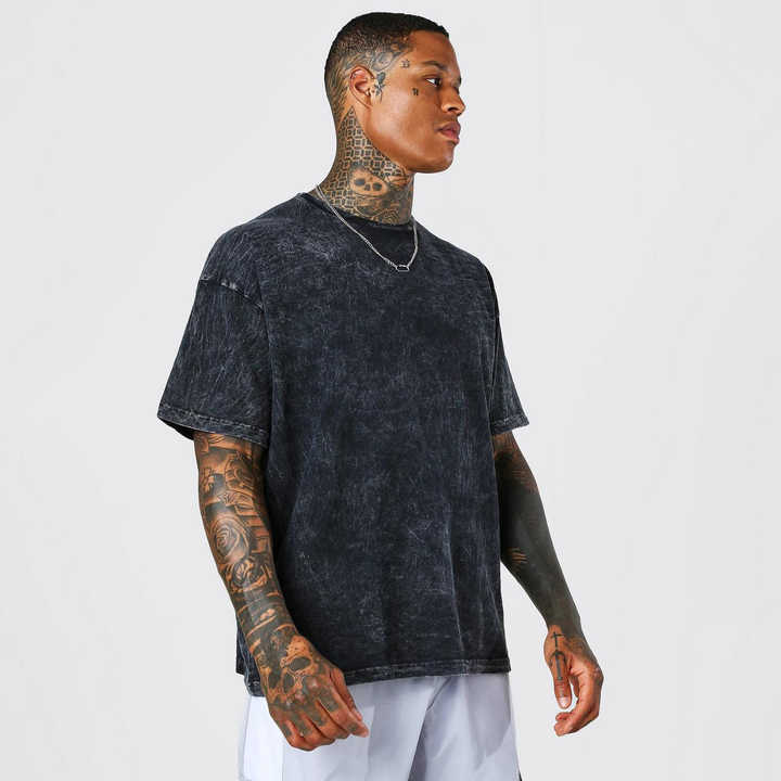 เสื้อยืดผ้าฝ้ายโอเวอร์ไซส์สำหรับผู้ชายผ้าคอตตอนซักได้สำหรับ250Gsm เสื้อเจอร์ซีย์สไตล์วินเทจผ้าเจอร์ซี่พิมพ์ลาย