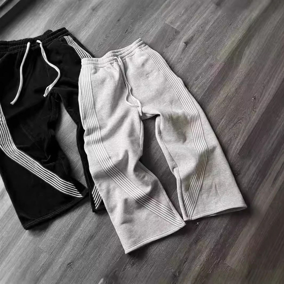 กางเกงขายส่งผู้ชายผ้าฝ้ายถัก 100% ไซส์ใหญ่ ขากว้าง ลายทาง ปลายขาหลวม ปักลายตามสั่ง แห้งเร็ว สไตล์สตรีทแวร์