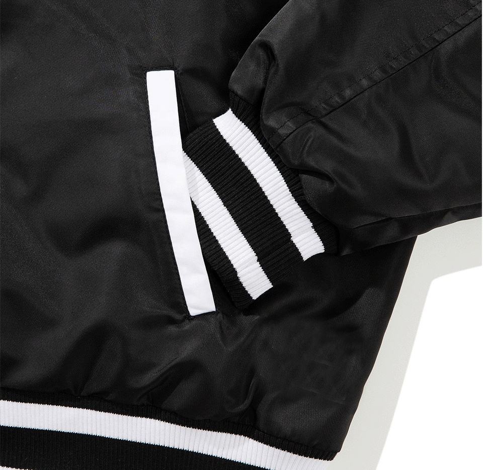 แจ็คเก็ตเบสบอลแบบวาร์ซิตี้ผ้าซาตินโพลีเอสเตอร์ 100% สำหรับผู้ชาย ขายส่ง แบบมีซิป ปักลาย ระบายอากาศได้ดี ผ้าฝ้าย สำหรับฤดูหนาว รับสั่งทำ