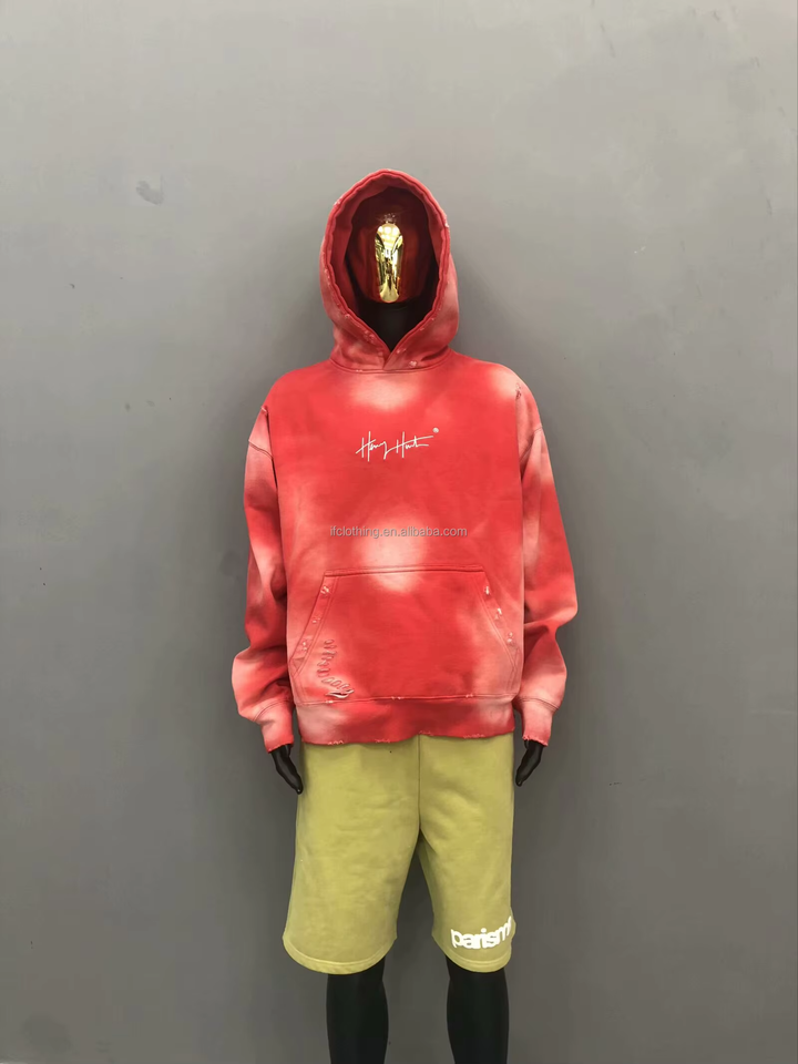 เสื้อฮู้ดดี้ผู้ชายสไตล์วินเทจแบบย้อมสีเอซิด ขาดๆ แบบมีซิปเต็มตัว ดีไซน์ใหม่ ทรงหลวม สตรีทแวร์ ลายตัวอักษร สำหรับฤดูหนาว ขายส่ง