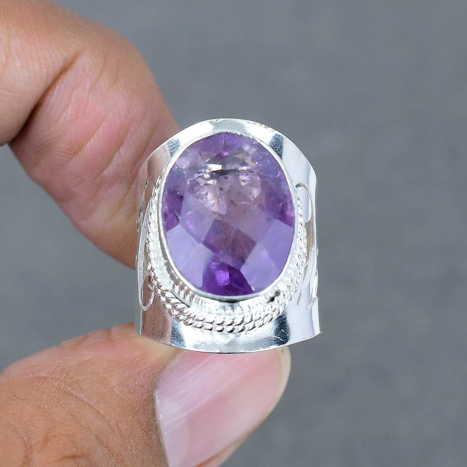 แหวนพลอยแอมะทิสต์ผู้ชายขายส่ง พลอยแท้ ชุบเงินบนทองเหลือง ประดับพลอยรูปไข่ เครื่องประดับแฟชั่นคุณภาพดี ราคาดีที่สุด