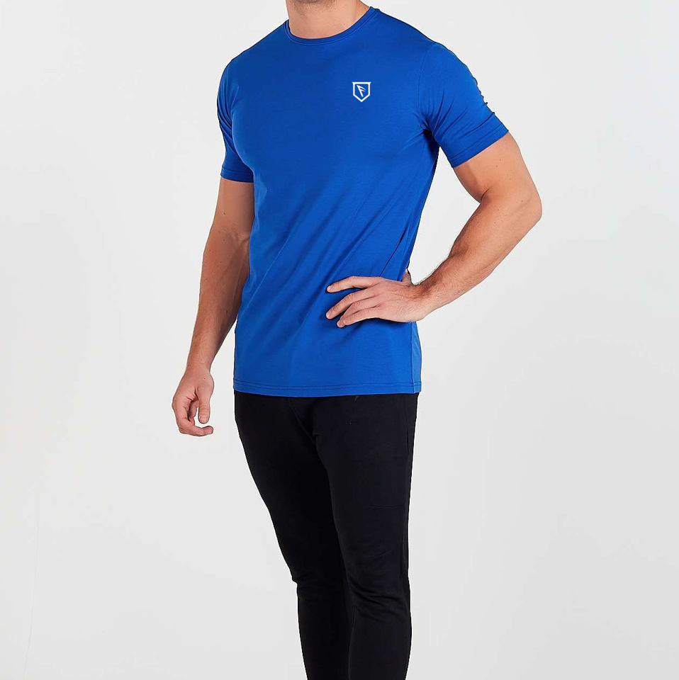 เสื้อยืดผ้าสแปนเด็กซ์สำหรับผู้ชายแห้งเร็วคอกลมแขนสั้นสำหรับฝึกซ้อมฟิตกล้ามเนื้อสีพื้น