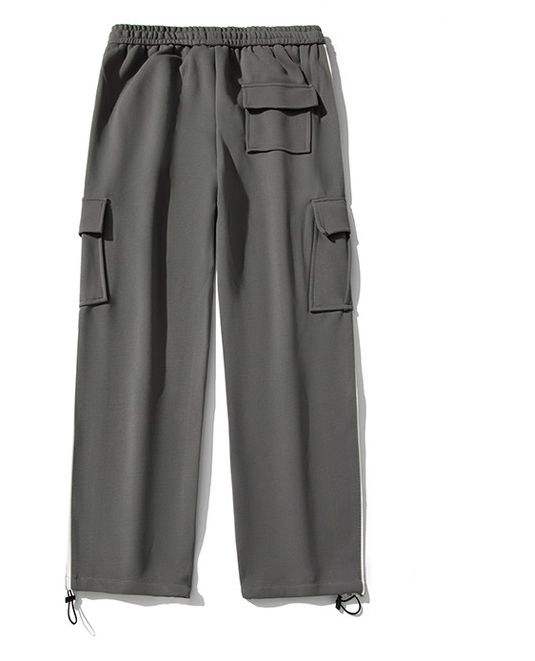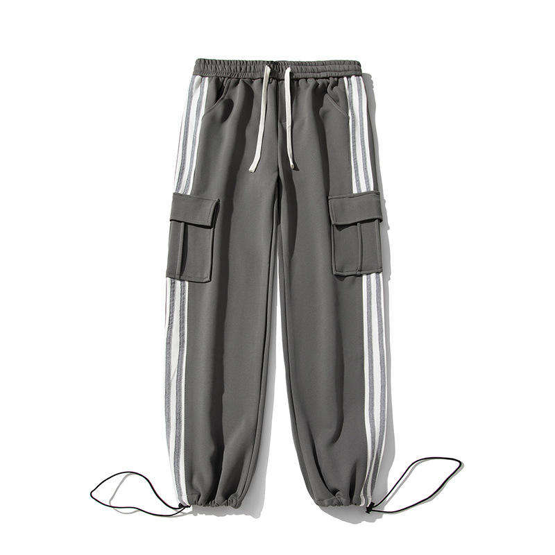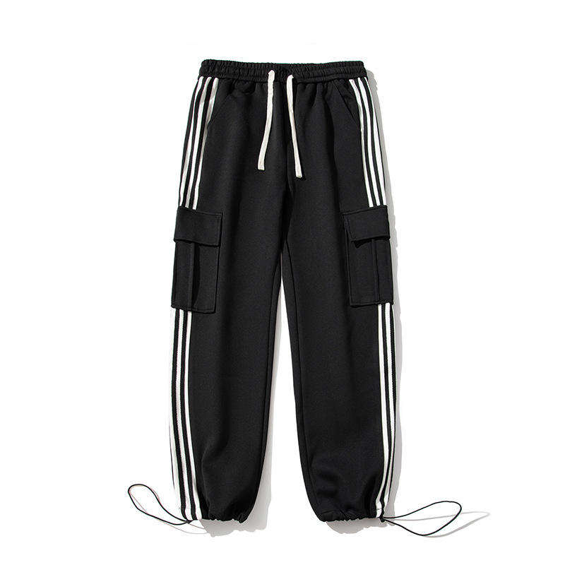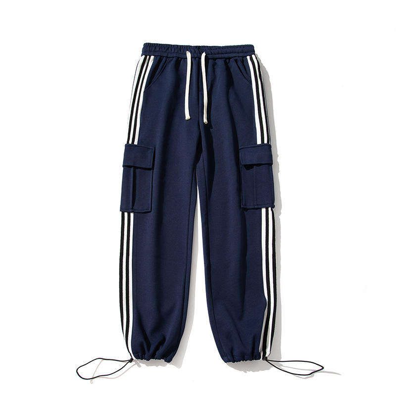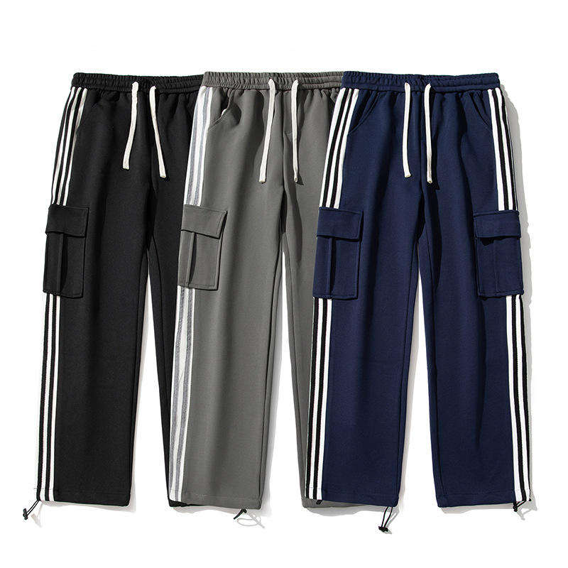 กางเกงกีฬาขายาวผ้าฟลีซสำหรับผู้ชายกางเกงกีฬาลำลองขากว้างผ้าคอตตอน100% ทรงหลวมเอวสูงสียืดหยุ่น