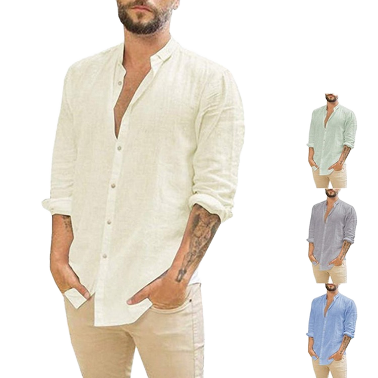 เสื้อเชิ้ตผู้ชายไซส์ใหญ่ ผ้าฝ้ายลินินทวิลล์ ยับยาก ระบายอากาศดี แขนยาว ดีไซน์สำหรับฤดูร้อน ขายส่ง