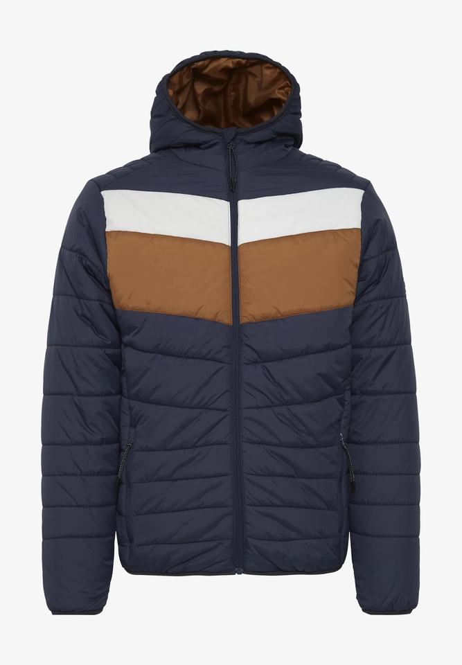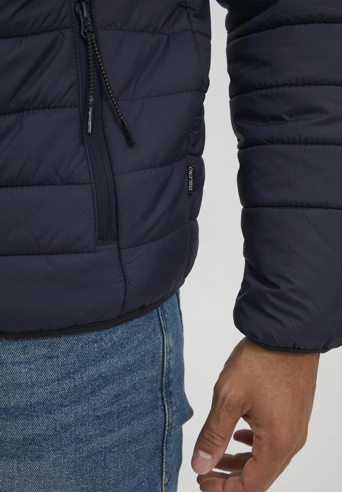 เสื้อแจ็กเก็ตไนลอนสีดำของผู้ชายสำหรับฤดูหนาวผ้าพัฟฟ์ลายผ้ากันลมเป็นมิตรกับสิ่งแวดล้อมน้ำหนักเบาออกแบบโลโก้ได้ตามต้องการ
