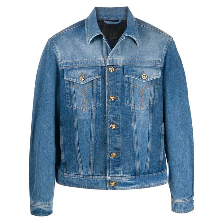 แจ็กเก็ตยีนส์สีน้ำเงินของผู้ชายแจ็กเก็ตซาฟารีมีฮู้ดขนาด XL แจ็กเก็ตสไตล์ยีนส์ปรับแต่งได้งานปัก