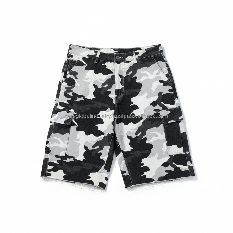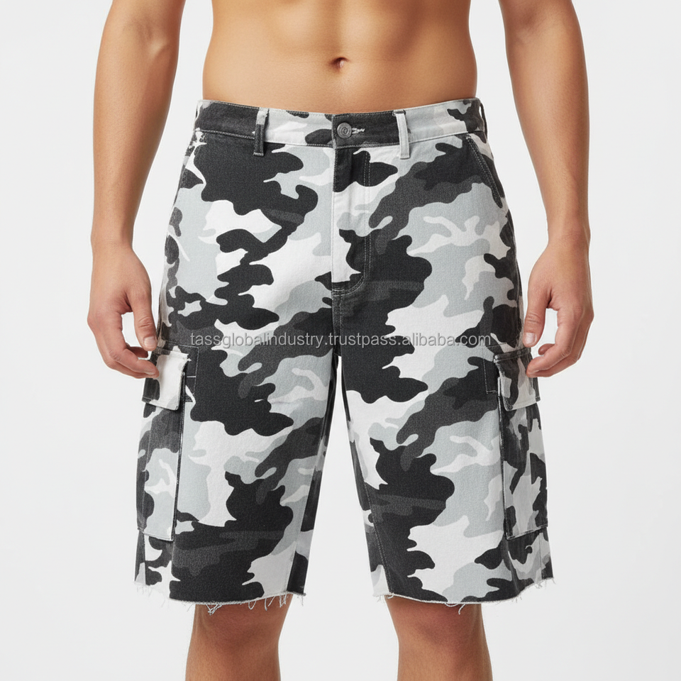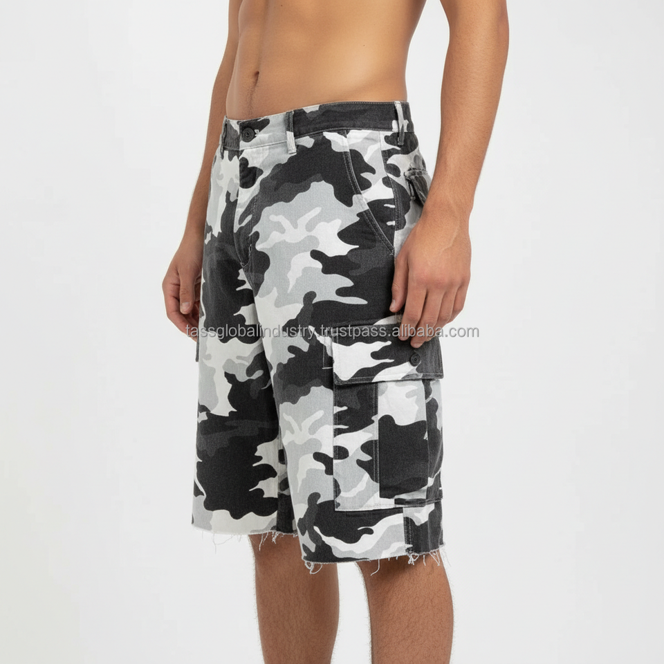 กางเกงขาสั้นคาร์โก้ผู้ชายขายส่ง หลายกระเป๋า ลายตัวอักษร OEM โพลีเอสเตอร์ 100% แห้งเร็ว ระบายอากาศดี เป็นมิตรกับสิ่งแวดล้อม สีดำ สีเทา 2026