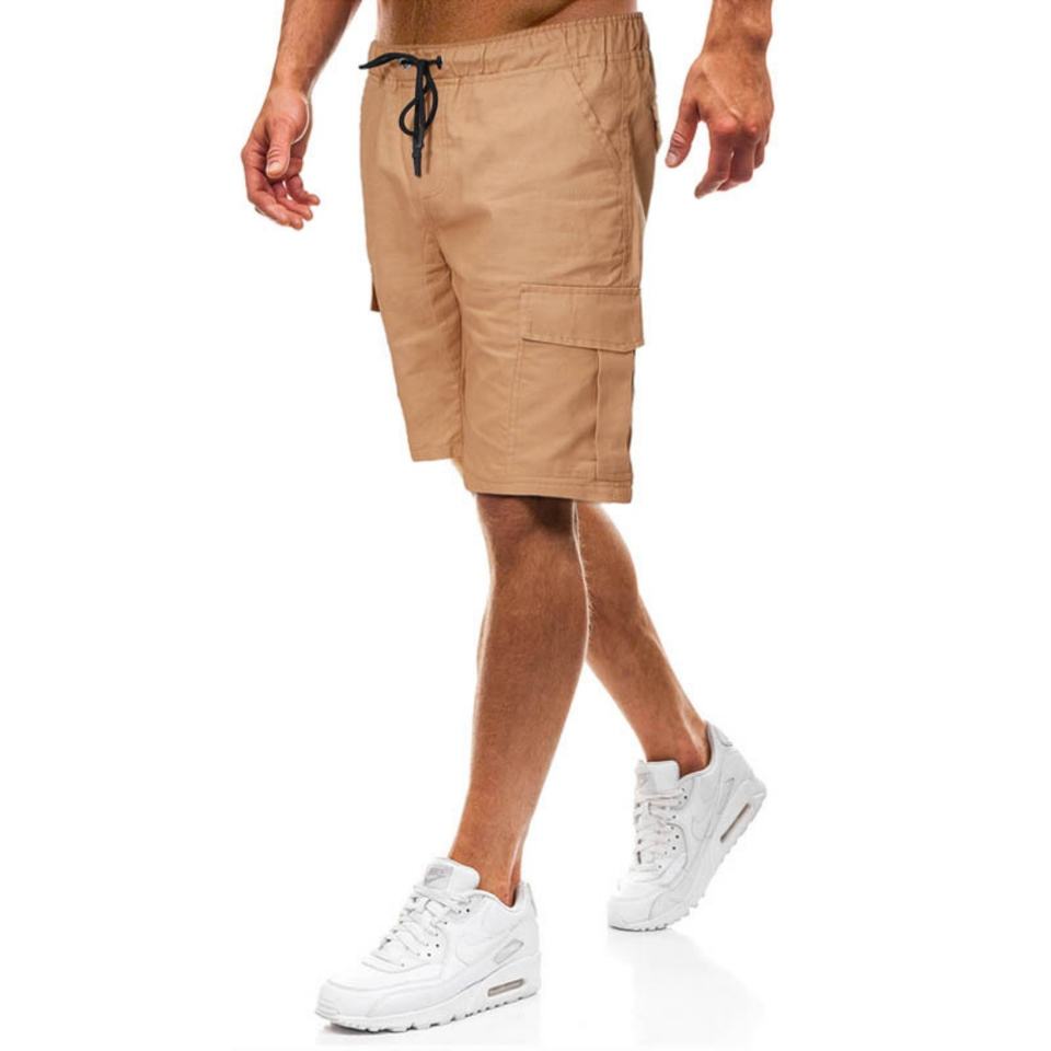 กางเกงขาสั้นคาร์โก้ผู้ชายขายส่ง หลายกระเป๋า 6 ช่อง สีดำ สีกากี ความยาวครึ่งขา เป็นมิตรกับสิ่งแวดล้อม เอวกลาง
