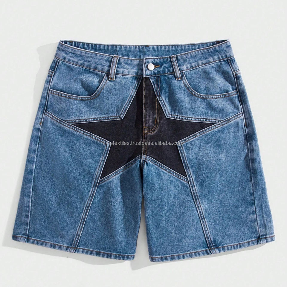 กางเกงยีนส์ซักลำลองสำหรับผู้ชายขายส่งกางเกงขาสั้นผ้ายีนส์ขนาดพิเศษเป็นมิตรต่อสิ่งแวดล้อม