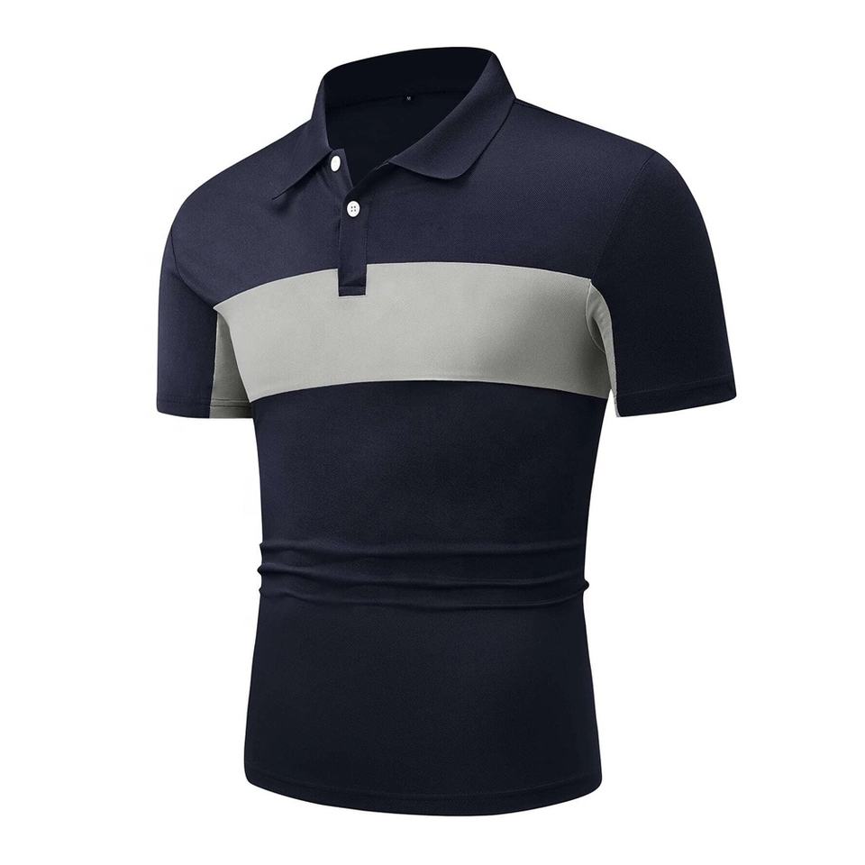 เสื้อโปโลแขนสั้นสำหรับผู้ชายเสื้อคอปกสีตัดกันเสื้อยืดกอล์ฟออกแบบได้ตามต้องการดีไซน์ใหม่