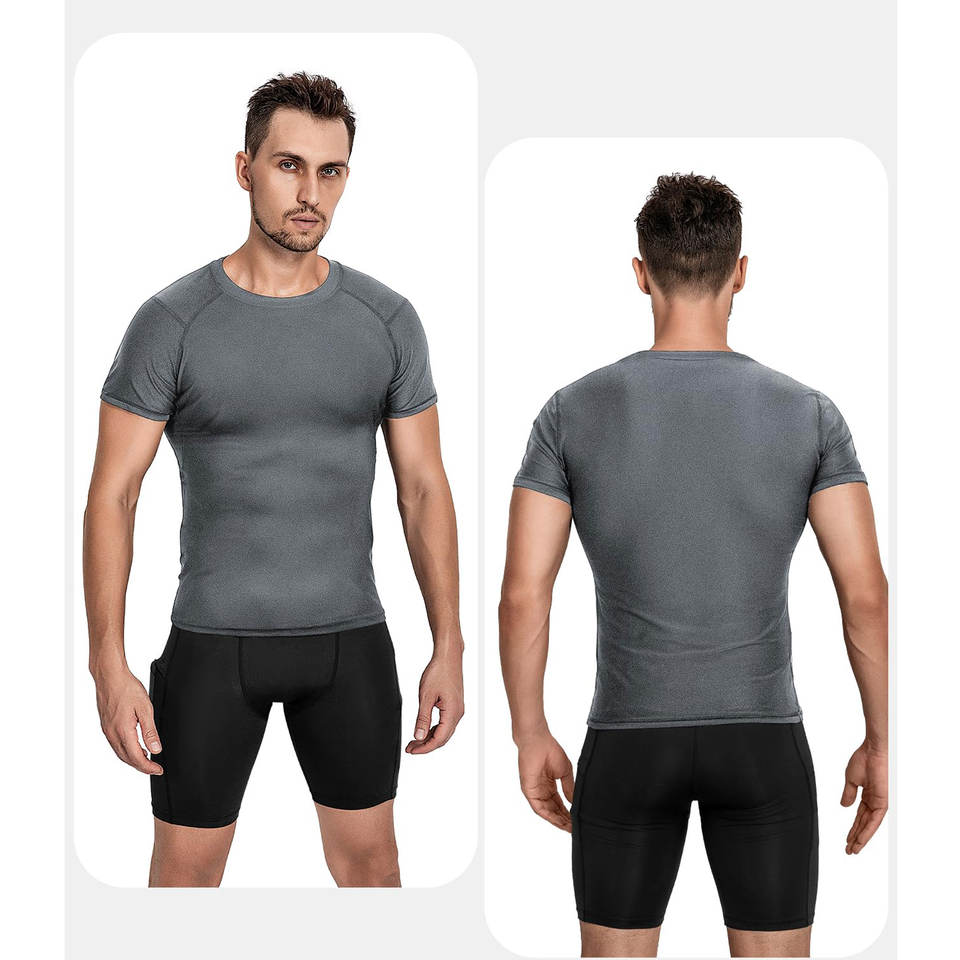 เสื้อรัดกล้ามเนื้อแขนสั้นสำหรับผู้ชายเสื้อยืดออกกำลังกายแห้งเย็นสำหรับฤดูร้อน
