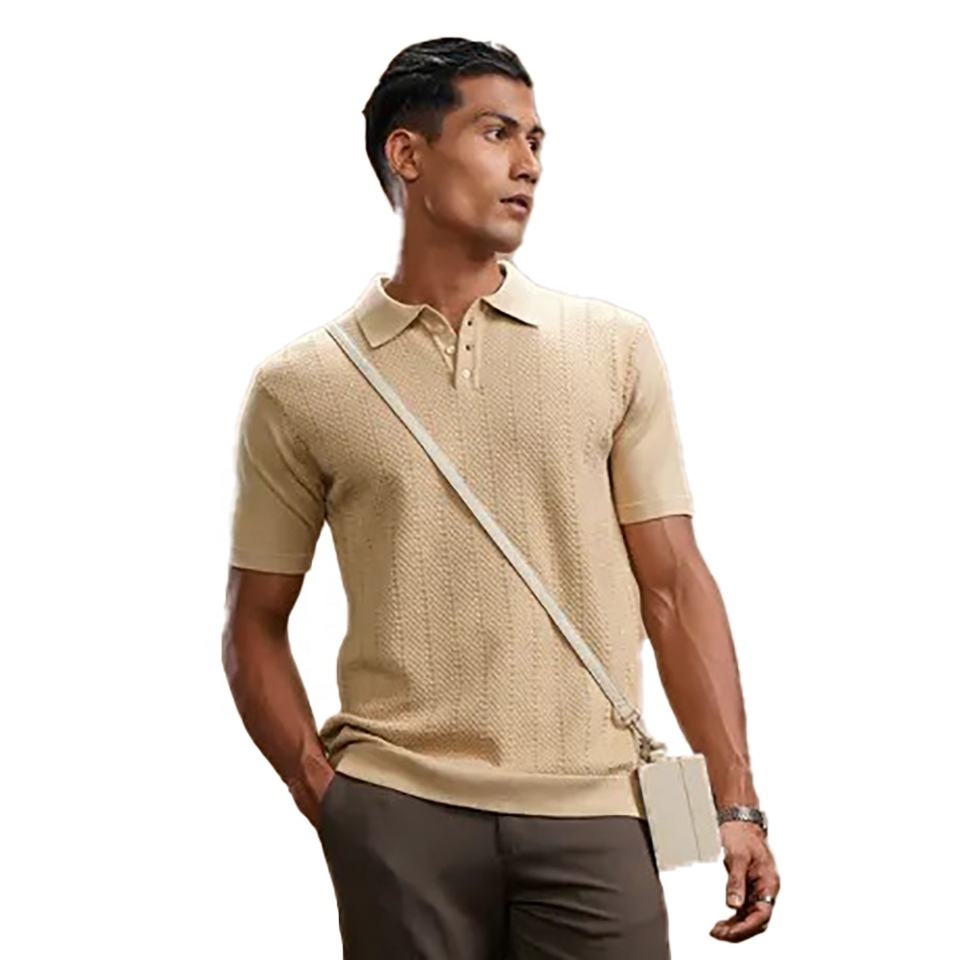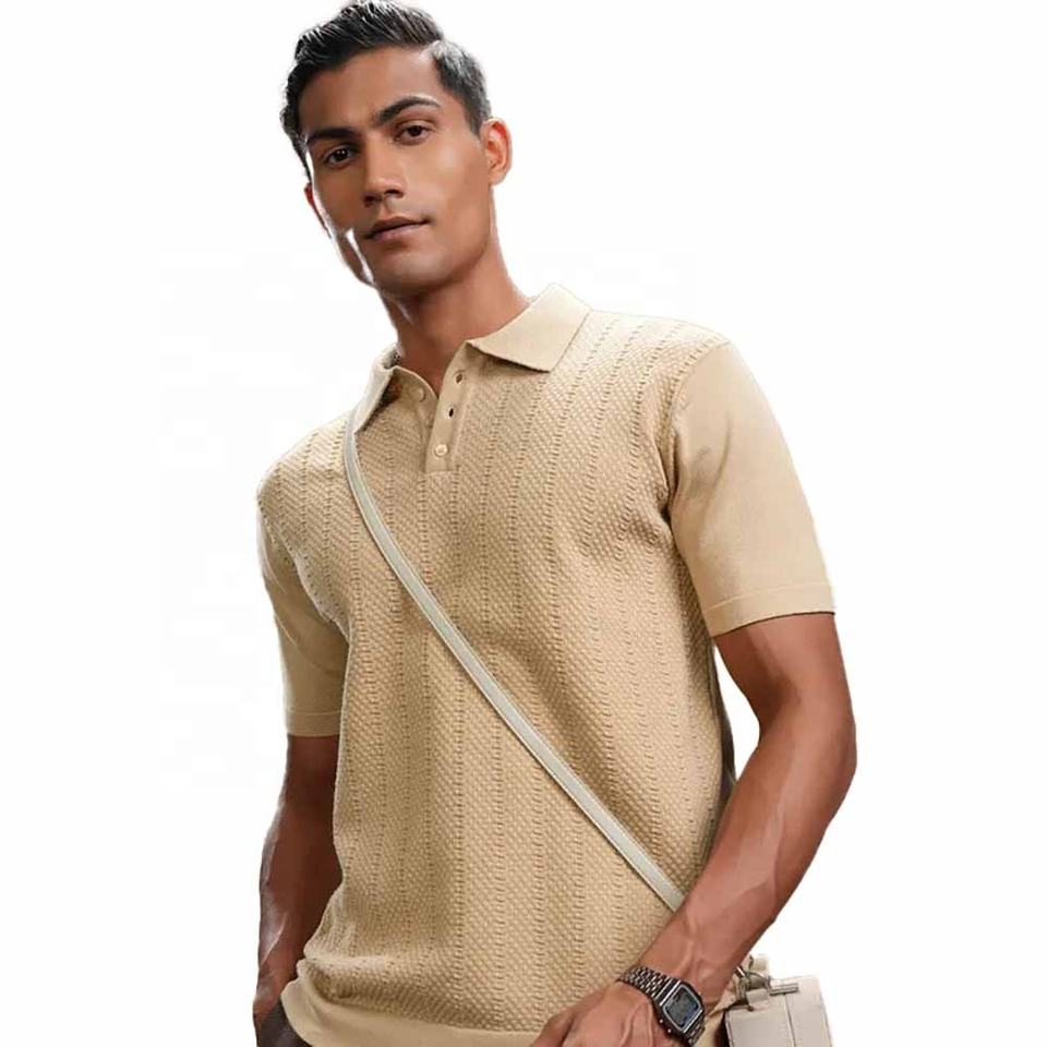 เสื้อยืดคอโปโลแขนสั้นสำหรับผู้ชายเสื้อถักจัมเปอร์ถักลายแบบมีกระดุมสำหรับฤดูร้อน
