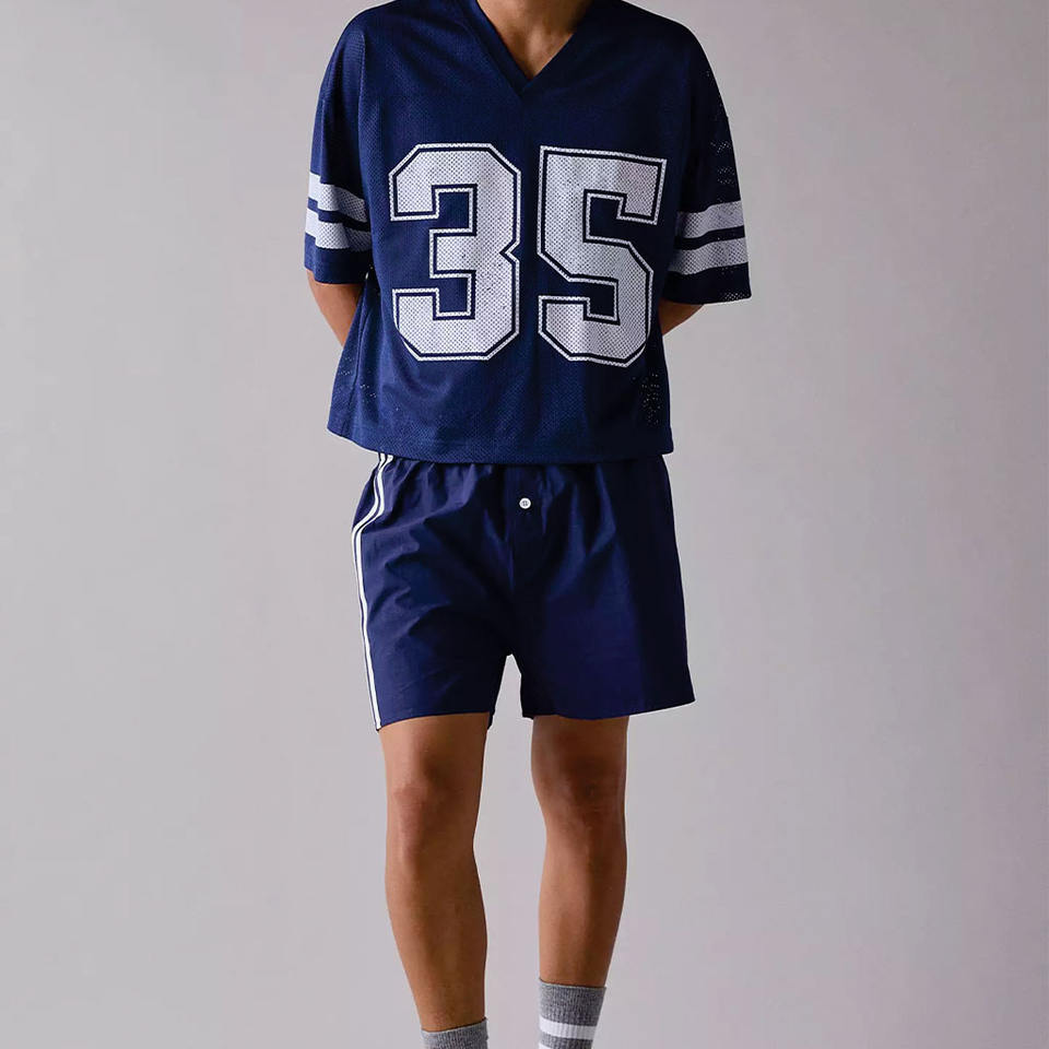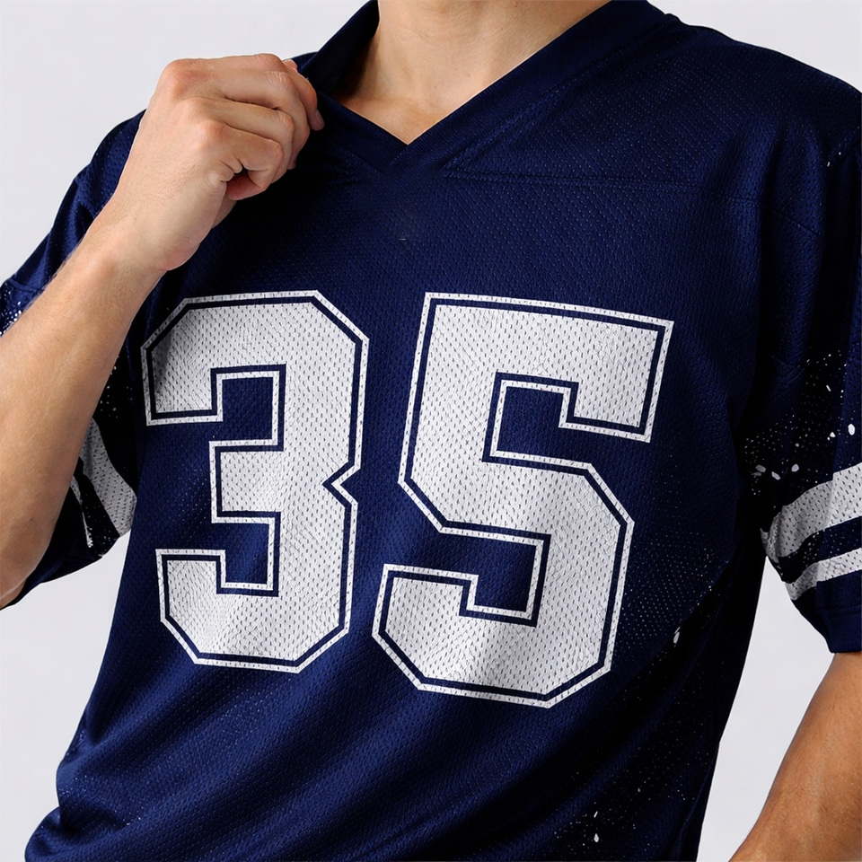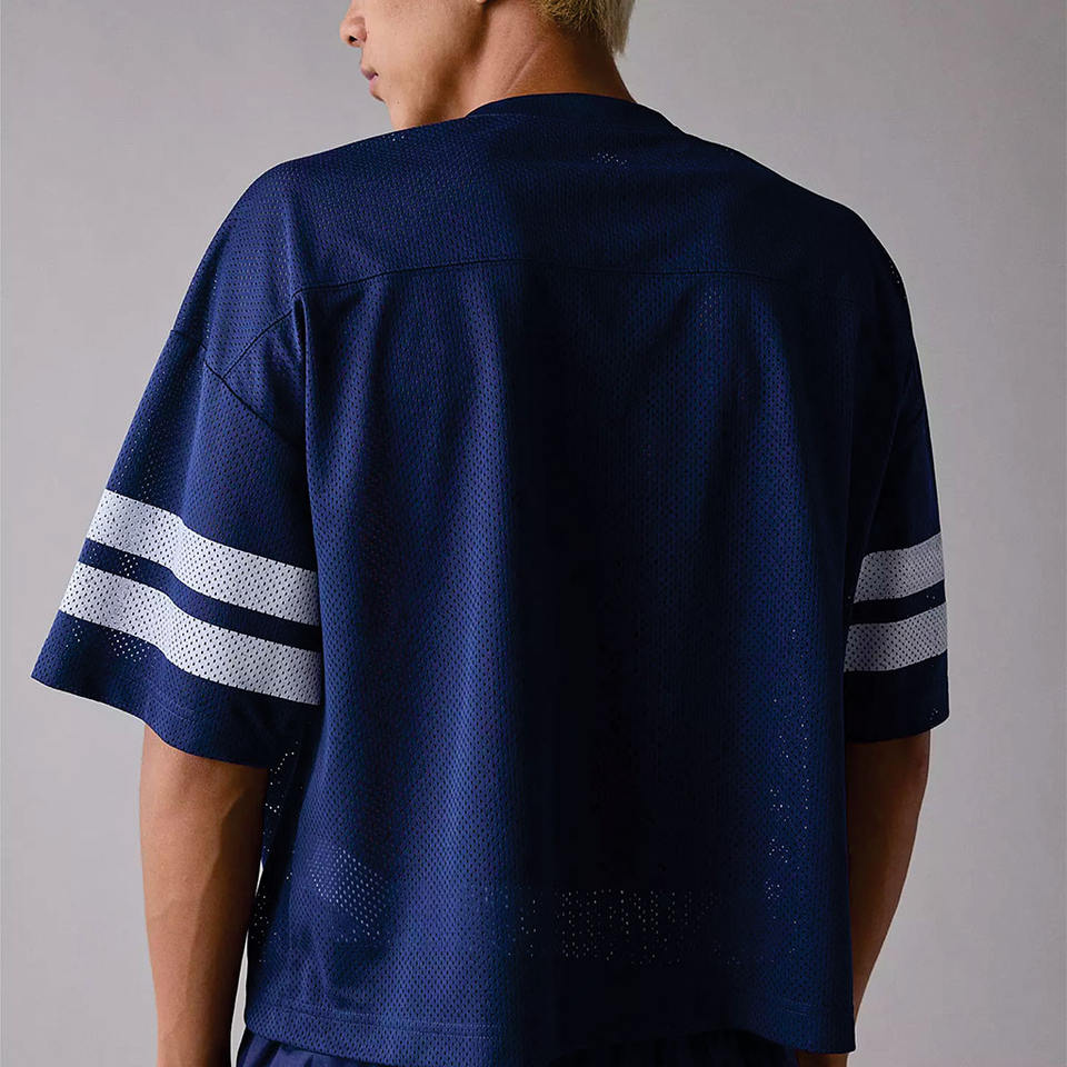 เสื้อฟุตบอลอเมริกันผู้ชายสั่งทำขายส่ง ทรงโอเวอร์ไซส์ ระบายอากาศได้ดี ผลิตจากโพลีเอสเตอร์ คอวี เสื้อซ้อม ผลิตจำนวนมากแบบ OEM