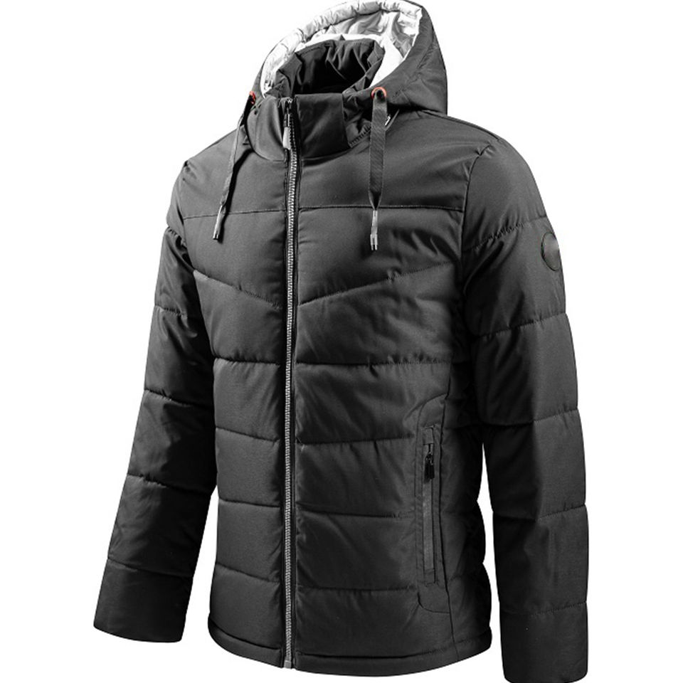 แจ็กเก็ตขนเป็ดมีฮู้ดสีดำสำหรับผู้ชายเสื้อแจ็คเก็ตขนเป็ดมีฮู้ดสำหรับฤดูหนาวกลางแจ้งแบบลำลอง