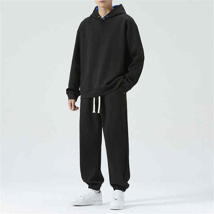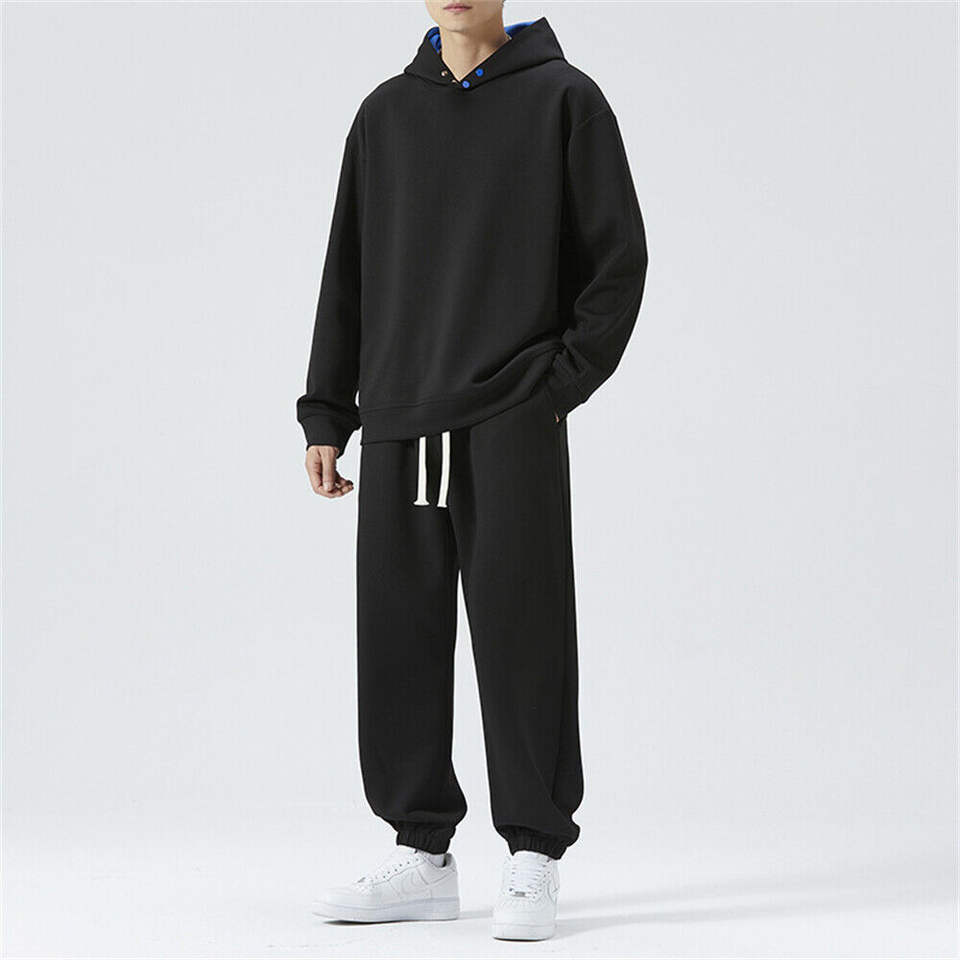 ชุดวอร์มแบบสวมศีรษะของผู้ชายชุดวอร์มกางเกงทรงหลวมมีฮู้ดทรงบ็อกซี่มีฮู้ด3D ถักไซส์พิเศษ