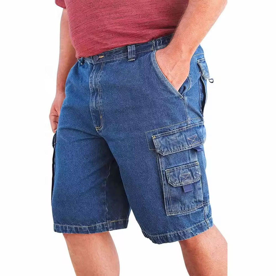 กางเกงยีนส์ขาสั้นผู้ชายขายส่ง ผลิตตามสั่ง OEM วัสดุคุณภาพสูง พร้อมสี ขนาด และโลโก้ที่กำหนดเอง กางเกงยีนส์ขาสั้นระบายอากาศได้ดี