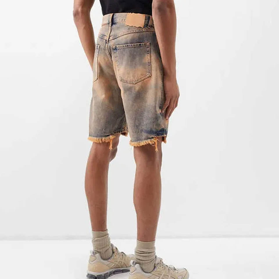 กางเกงยีนส์ขาสั้นผู้ชายแบบขาดๆ แต่งกระดุม สั่งทำได้ MOQ ต่ำ ขายส่ง
