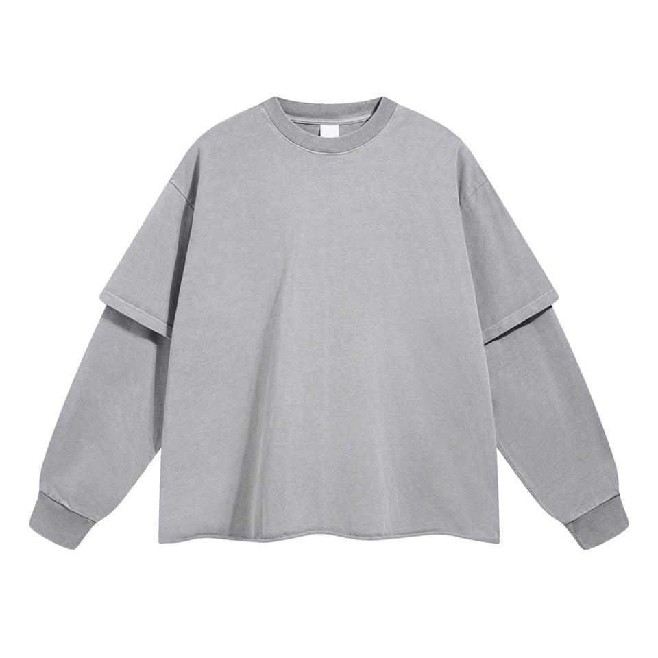 เสื้อยืดแขนยาวผู้ชายสองชั้น ผ้าฝ้าย 100% ขายส่ง รับสกรีนโลโก้ | เสื้อผ้าสตรีทแวร์สไตล์ลำลอง แห้งเร็ว เป็นมิตรกับสิ่งแวดล้อม