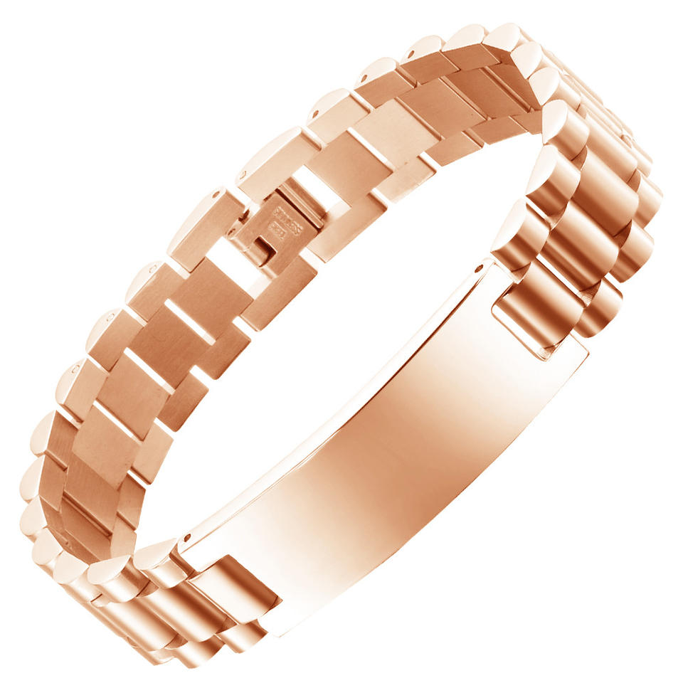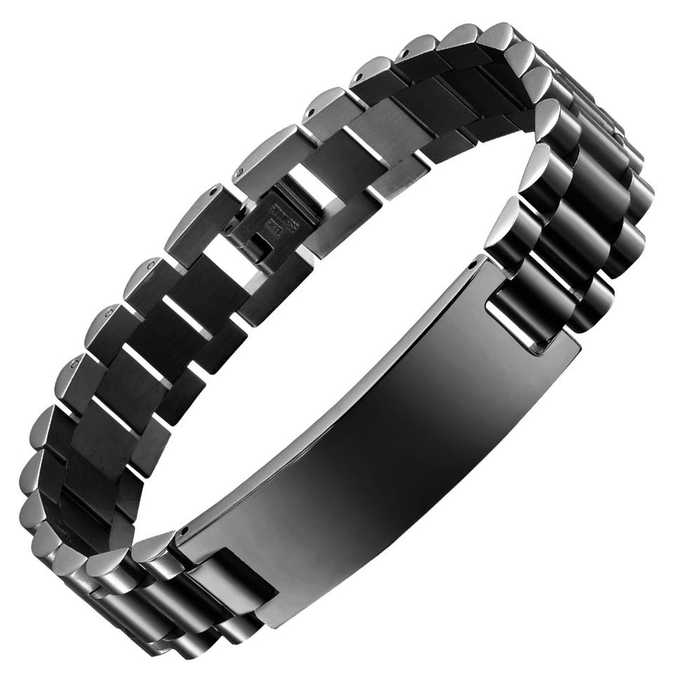 สร้อยข้อมือสแตนเลสสำหรับผู้ชายแบบโค้งสุดหรูพร้อมสายนาฬิกาคู่สีทองสีดำสลักกำไลแฟชั่น