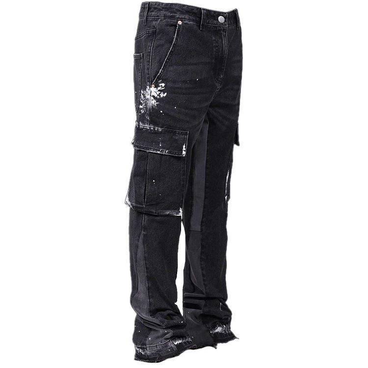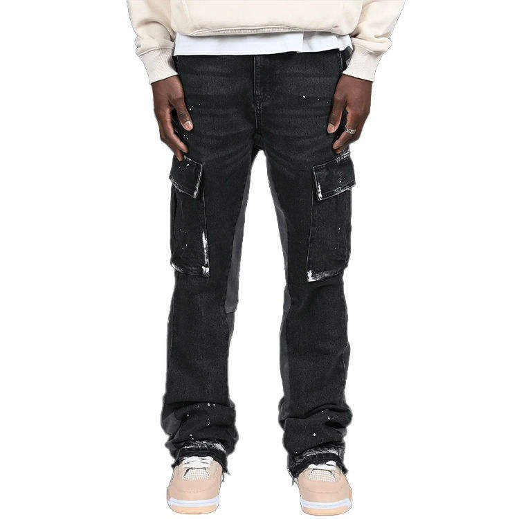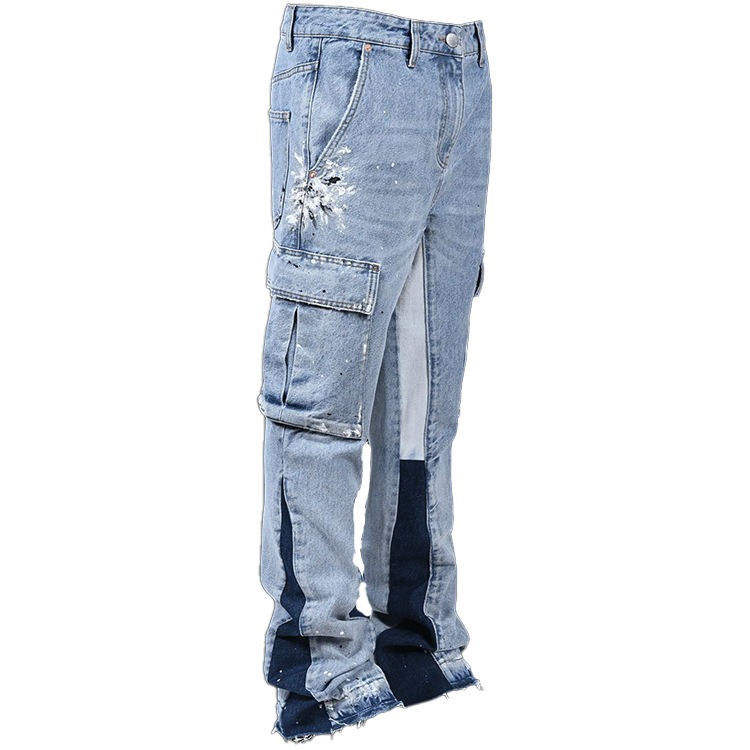 กางเกงยีนส์แฟชั่นผู้ชายขายส่ง ระบายอากาศได้ดี ทรงตรง ยืดได้ สวมใส่สบายๆ แบบสมาร์ทแคชชวล ขาดๆ แบบดิสเทรส