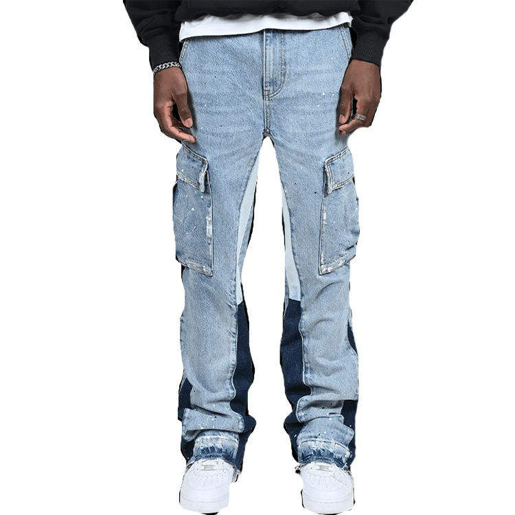 กางเกงยีนส์แฟชั่นผู้ชายขายส่ง ระบายอากาศได้ดี ทรงตรง ยืดได้ สวมใส่สบายๆ แบบสมาร์ทแคชชวล ขาดๆ แบบดิสเทรส