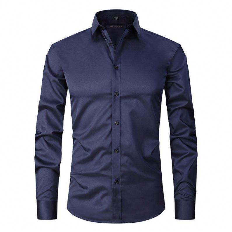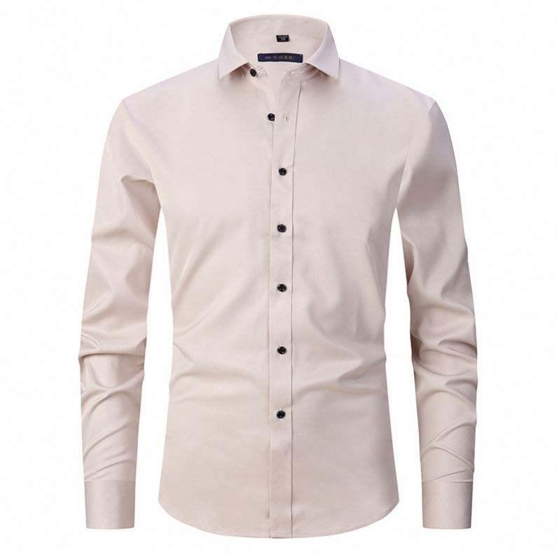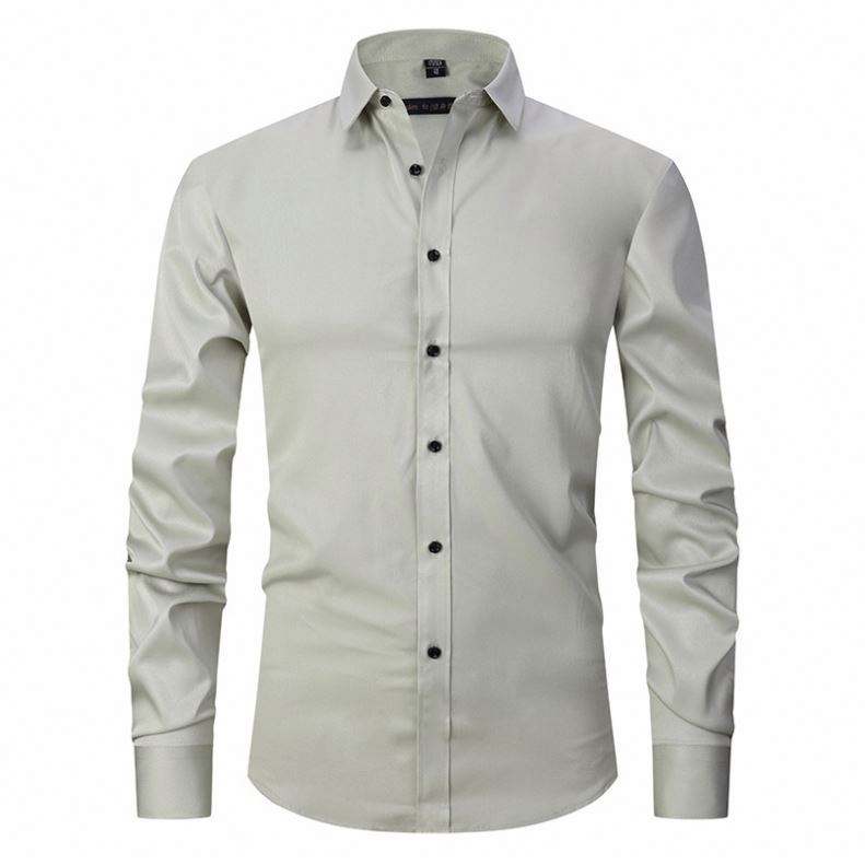 เสื้อเชิ้ตผู้ชายแฟชั่นสีพื้น ยืดหยุ่น กระชับทรงเข้ารูป แขนยาว สไตล์ธุรกิจ ขายส่ง เสื้อยืดทรงสลิมฟิตยอดนิยม