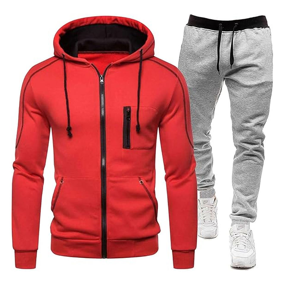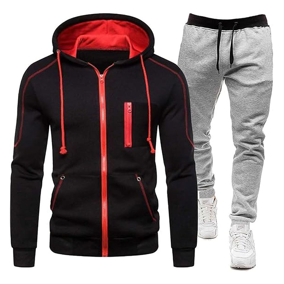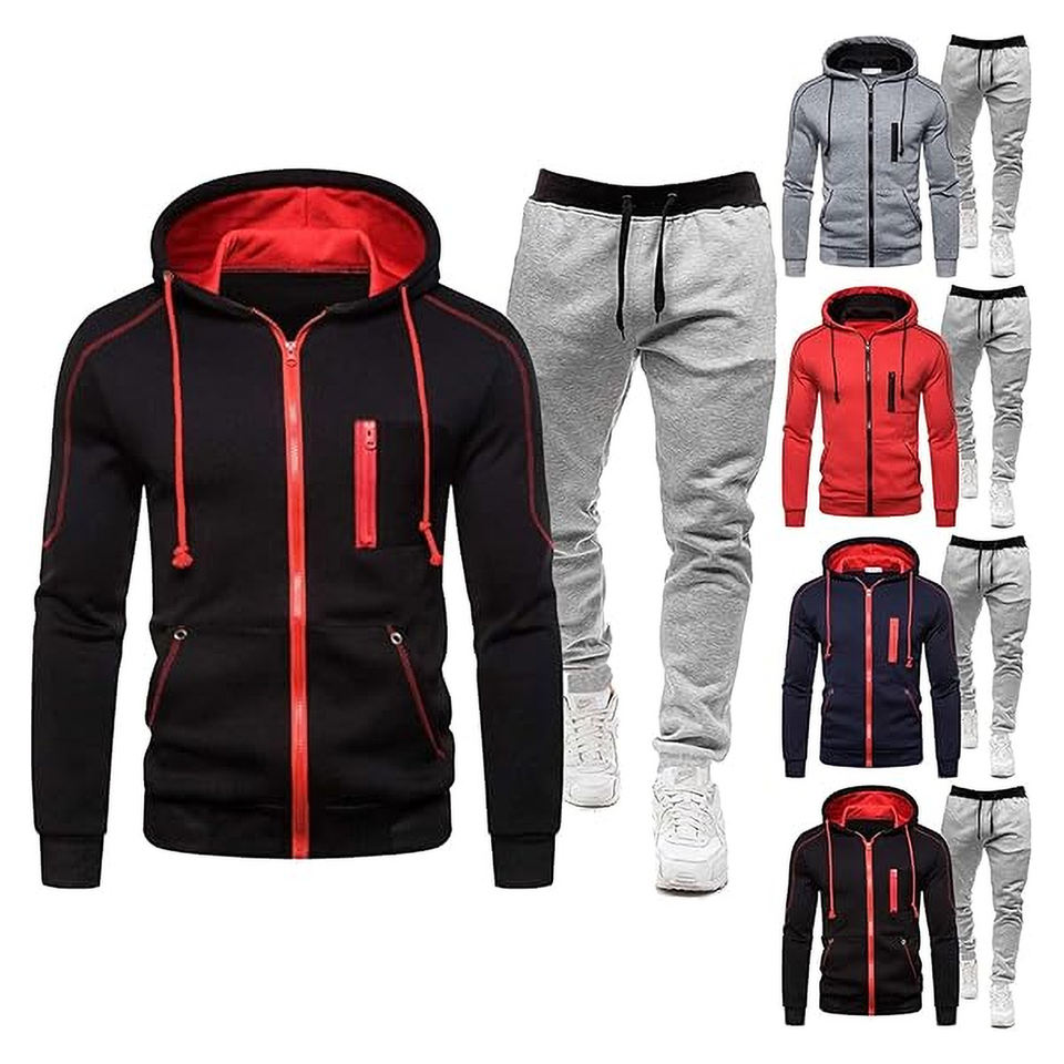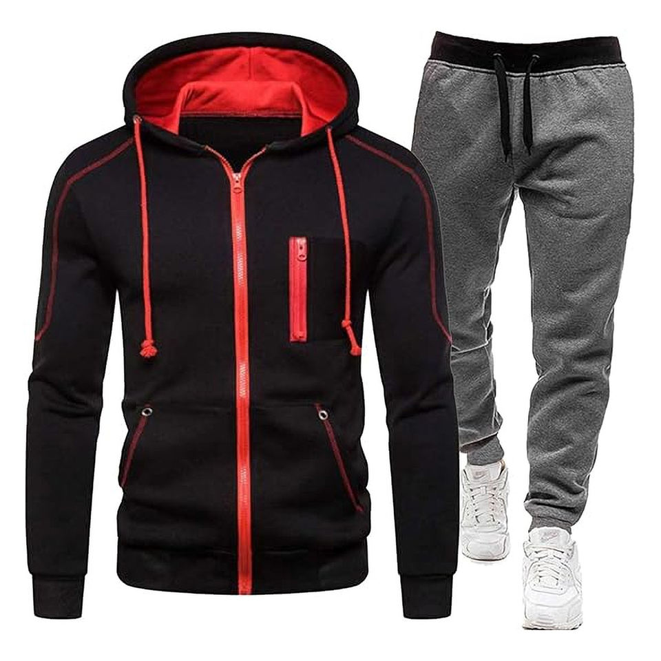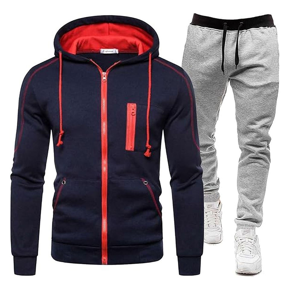 ชุดวอร์มออกกำลังกายของผู้ชายชุดเสื้อและกางเกงมีฮู้ดมีซิปชุดออกกำลังกายเล่นกีฬาชุดวิ่งออกกำลังกาย