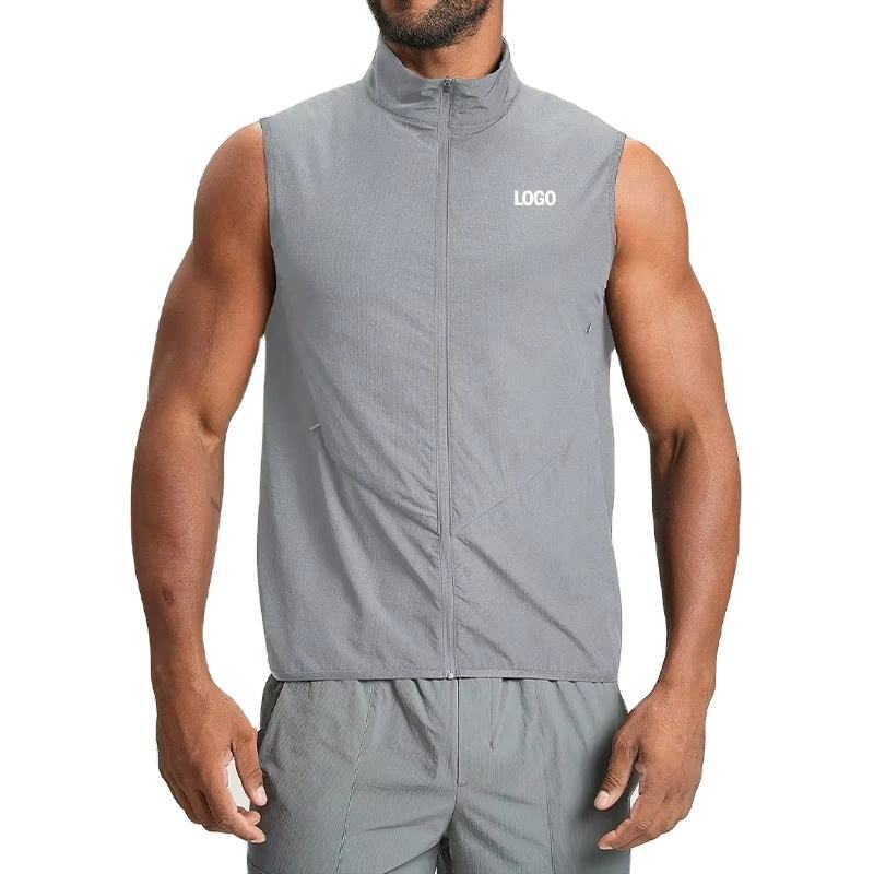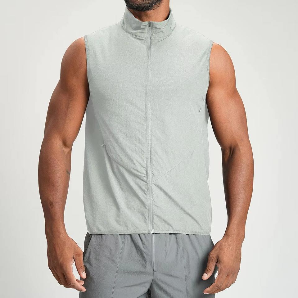 เสื้อกล้ามออกกำลังกายผู้ชายแบบซิปเต็มตัว ระบายอากาศได้ดี เสื้อยิมแขนกุด คอตั้ง เสื้อวิ่ง เสื้อคลุมน้ำหนักเบา ขายส่ง