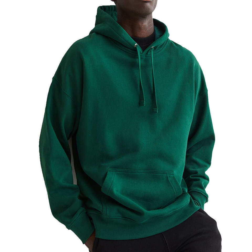 เสื้อสเวตเตอร์แบบสวมหัวสีเขียวสำหรับผู้ชายมีฮู้ดผ้าฟลีซผ้าฝ้ายแบบมีเชือกรูดมีกระเป๋าโลโก้ตามสั่งสำหรับฤดูหนาว
